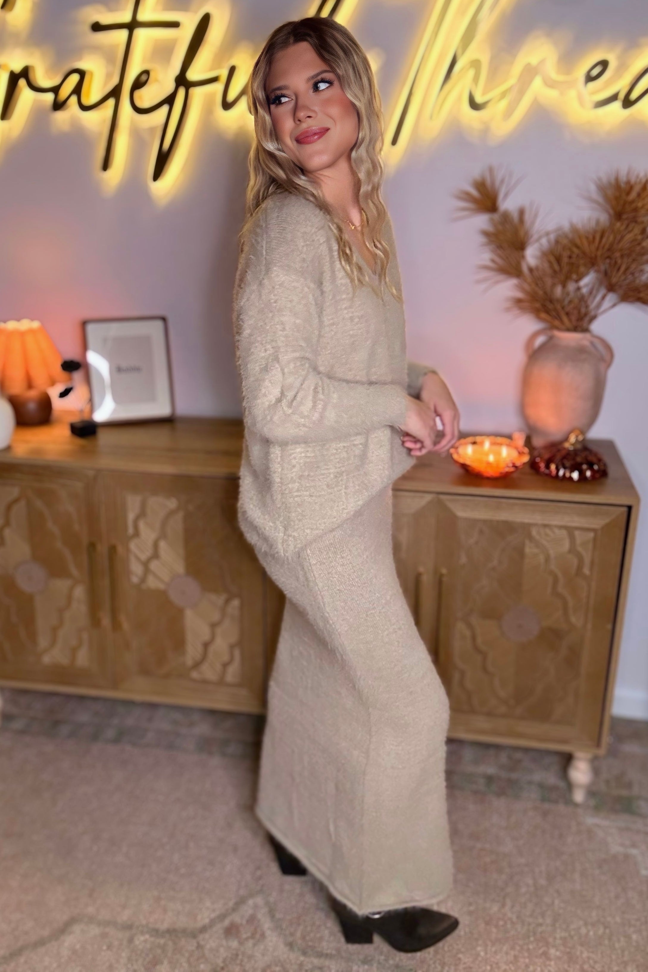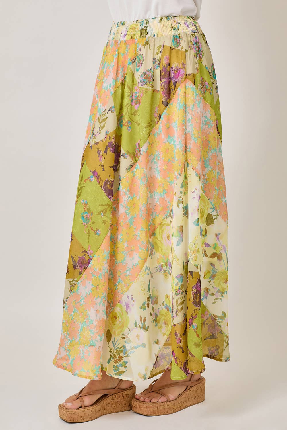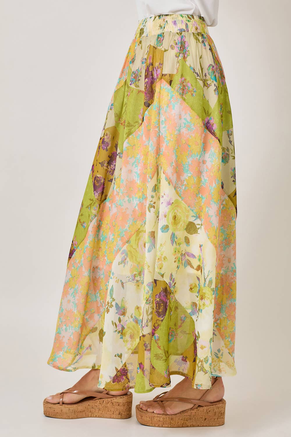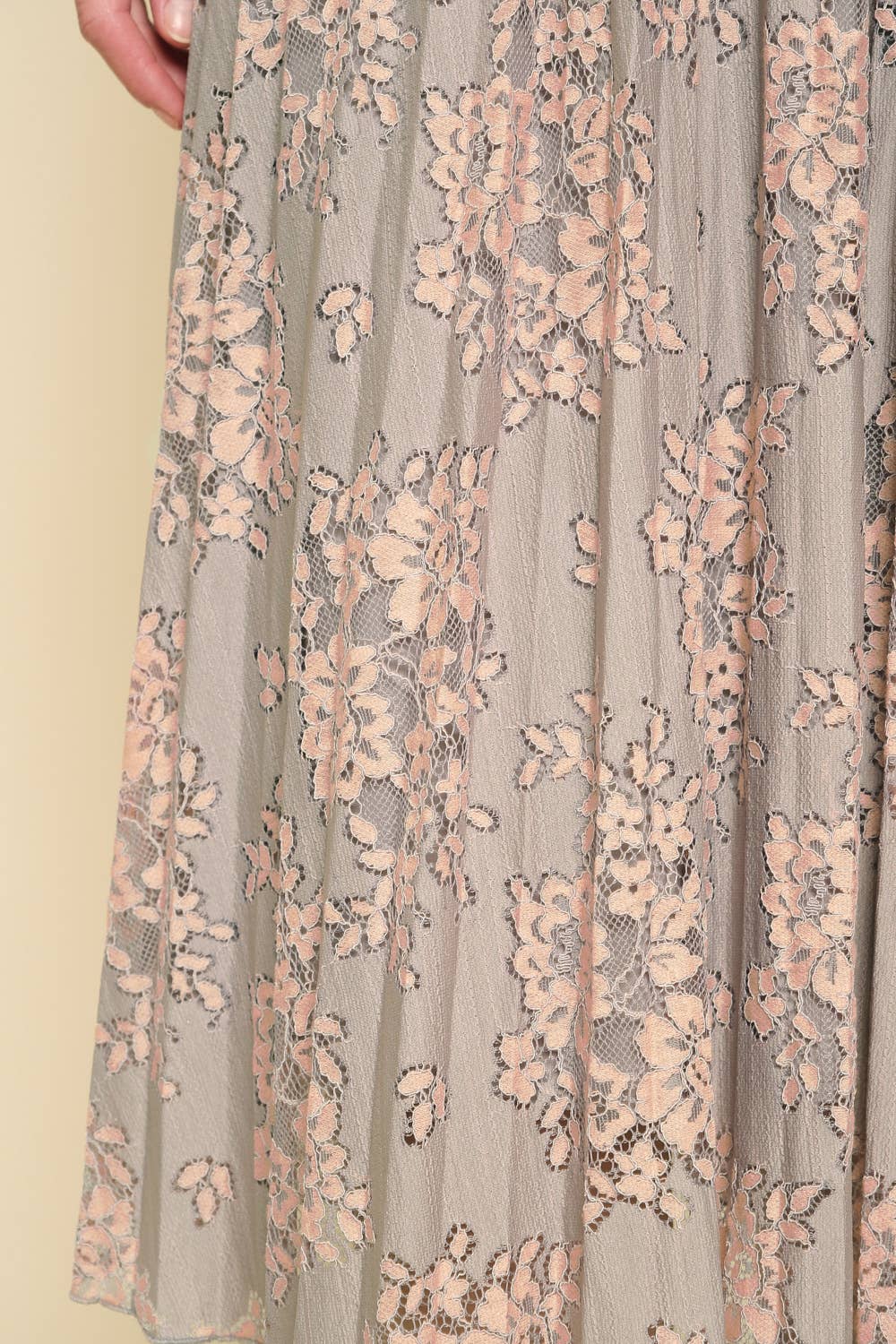 Oatmeal Embroidered Mesh Overlay Flowy Long Skirt