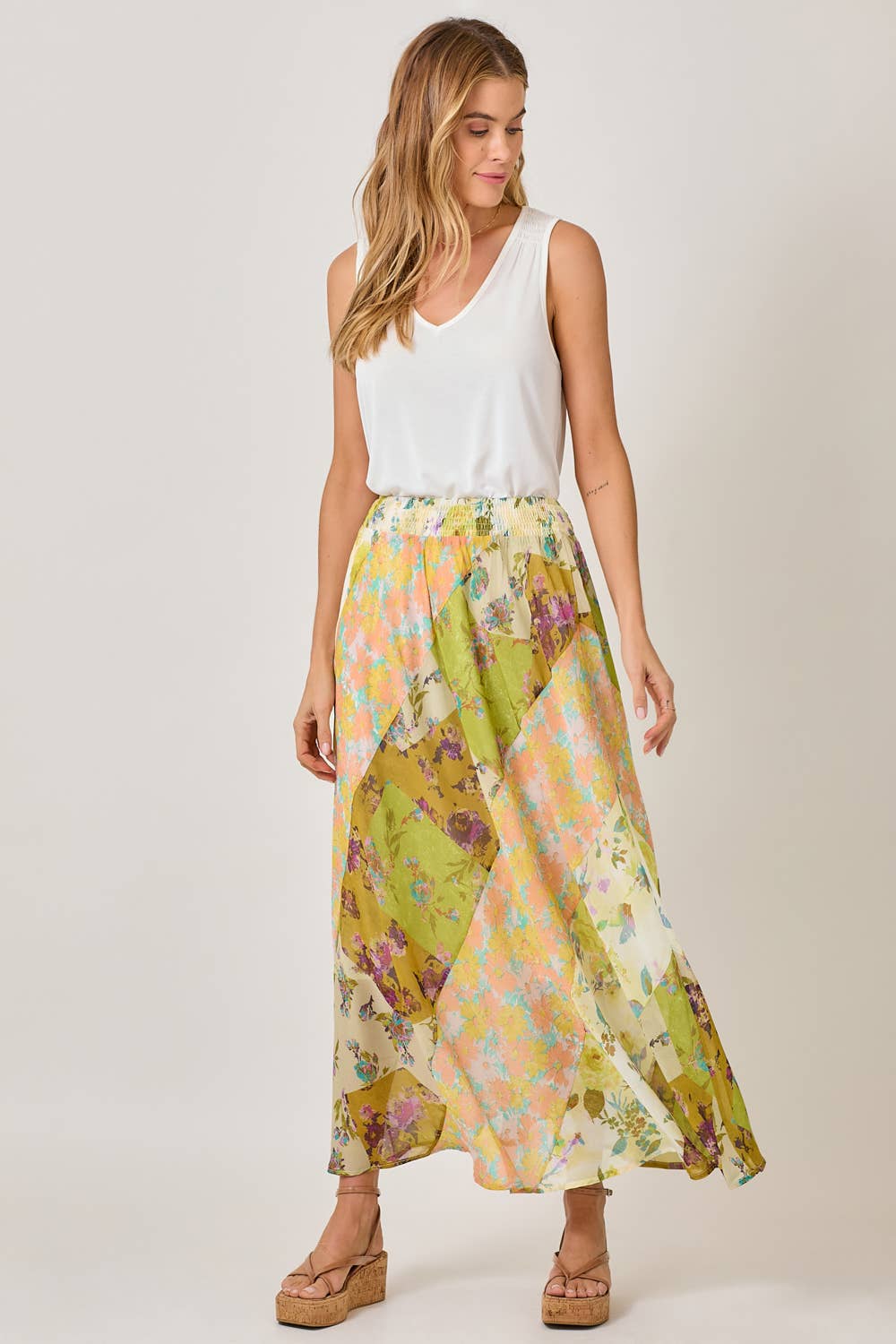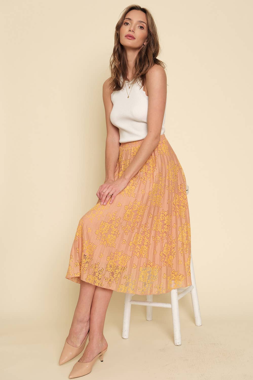 AEMI + CO - Bradyn Print Skirt: Tan/Orange