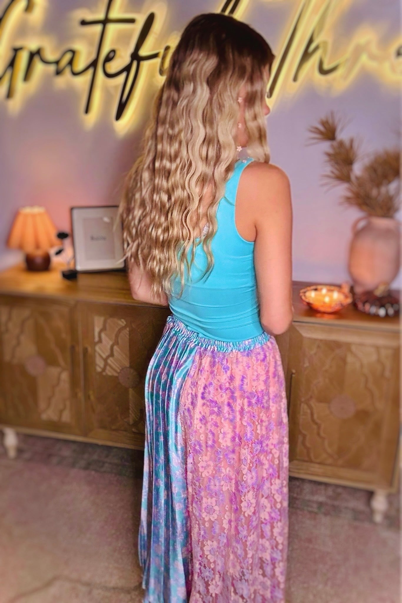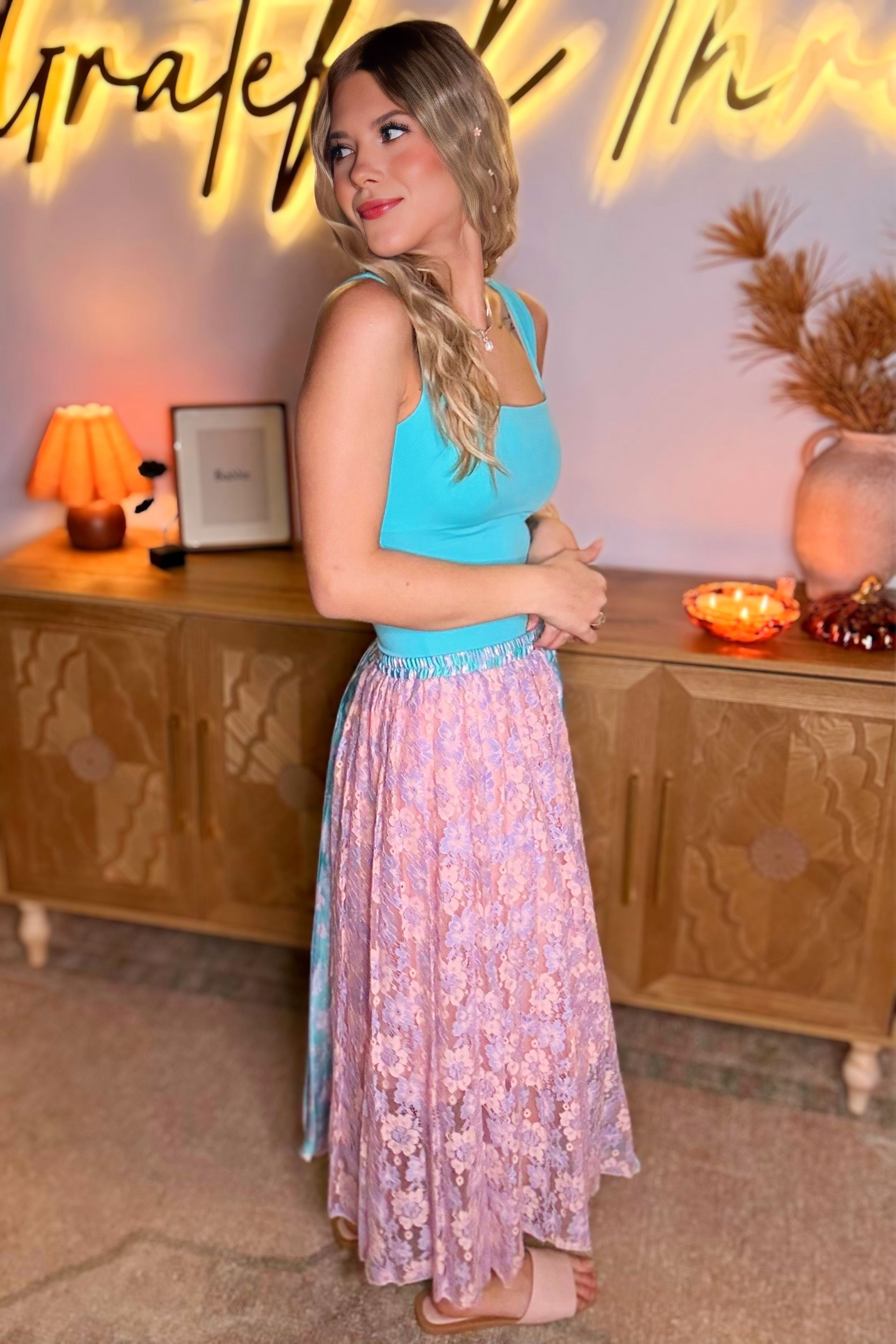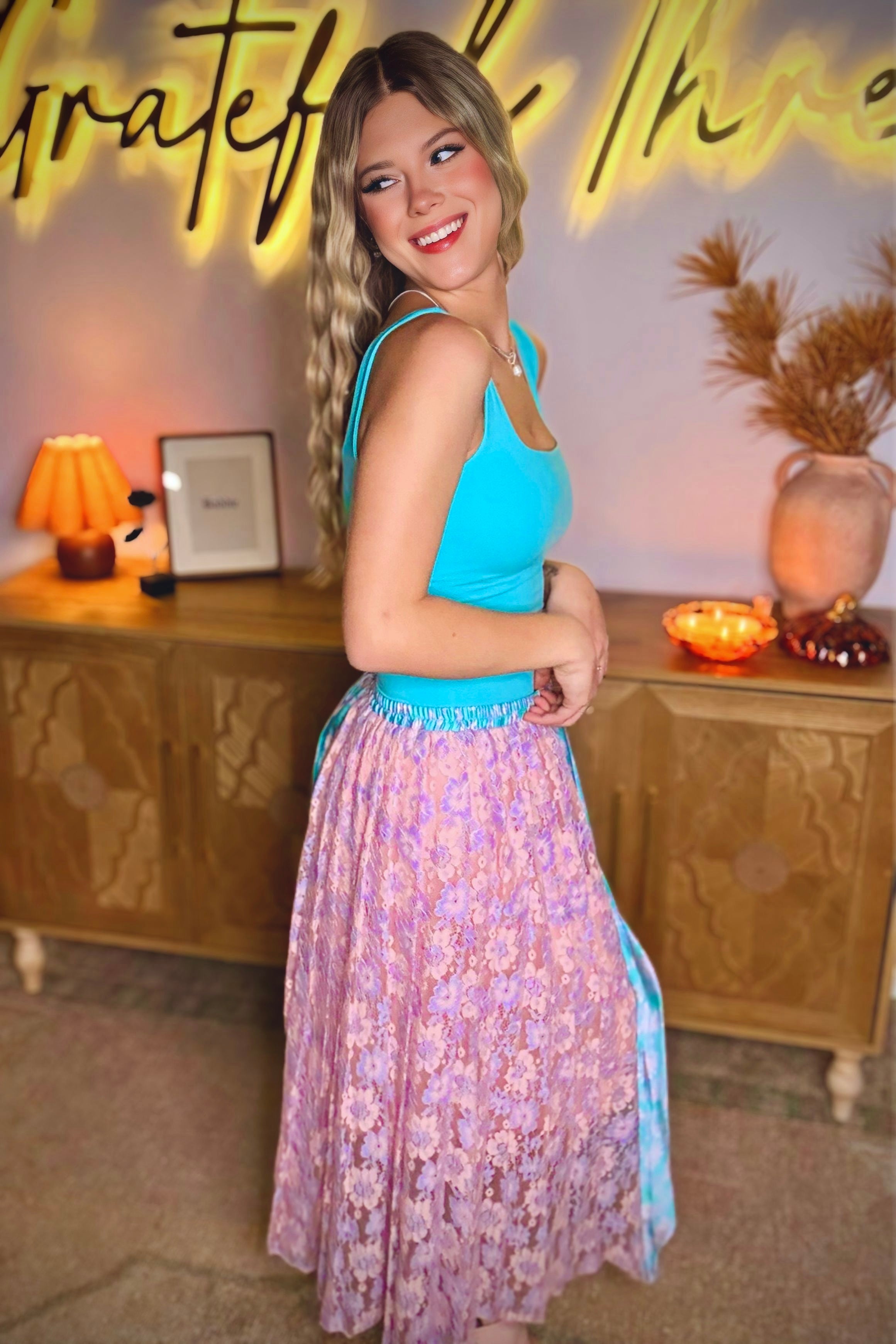 Endless Blu High Waisted Crochet Lace Midi Skirt