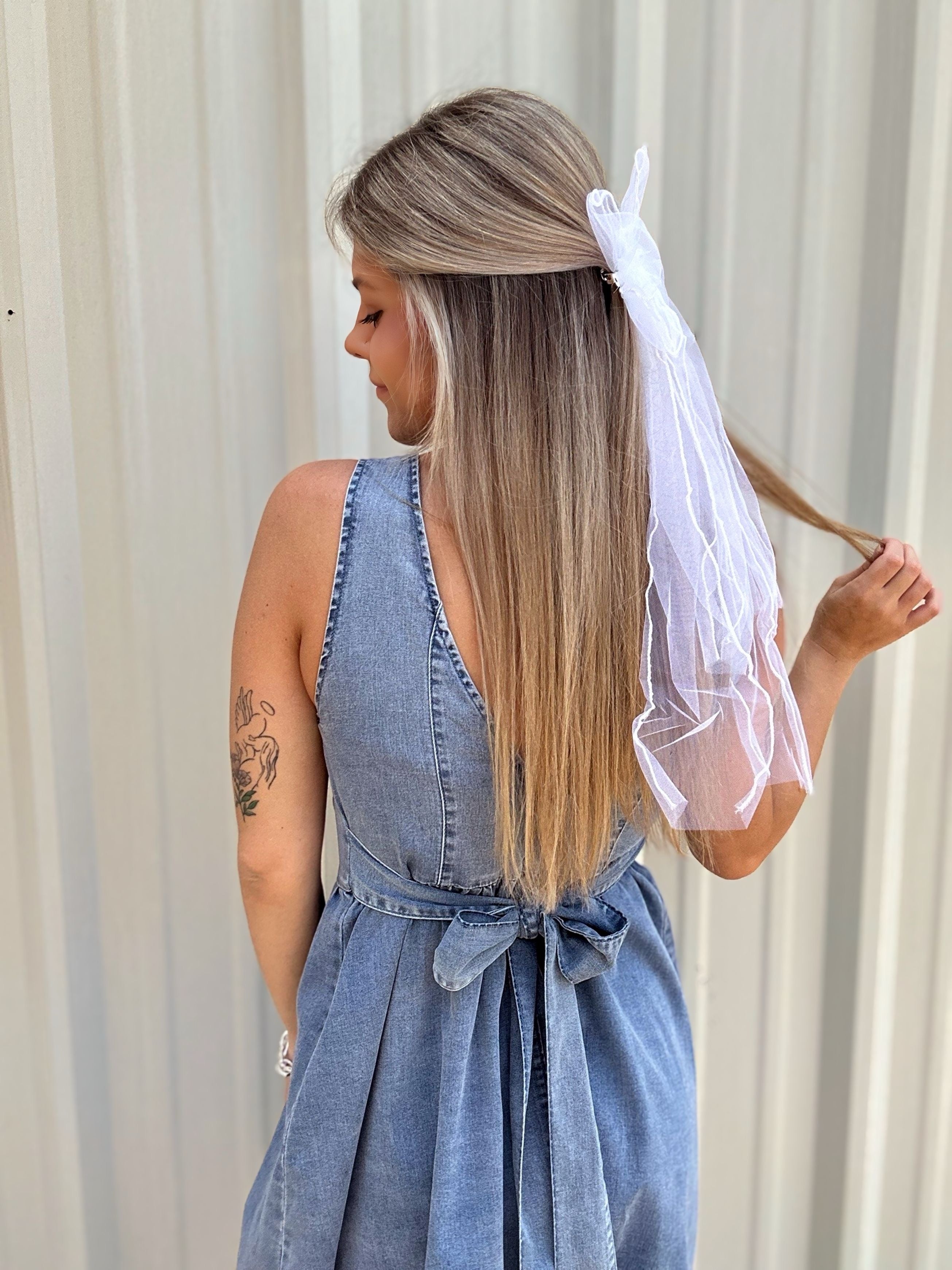 Myosotis Square Neck Bowknot A-line Sleeveless Denim Dress