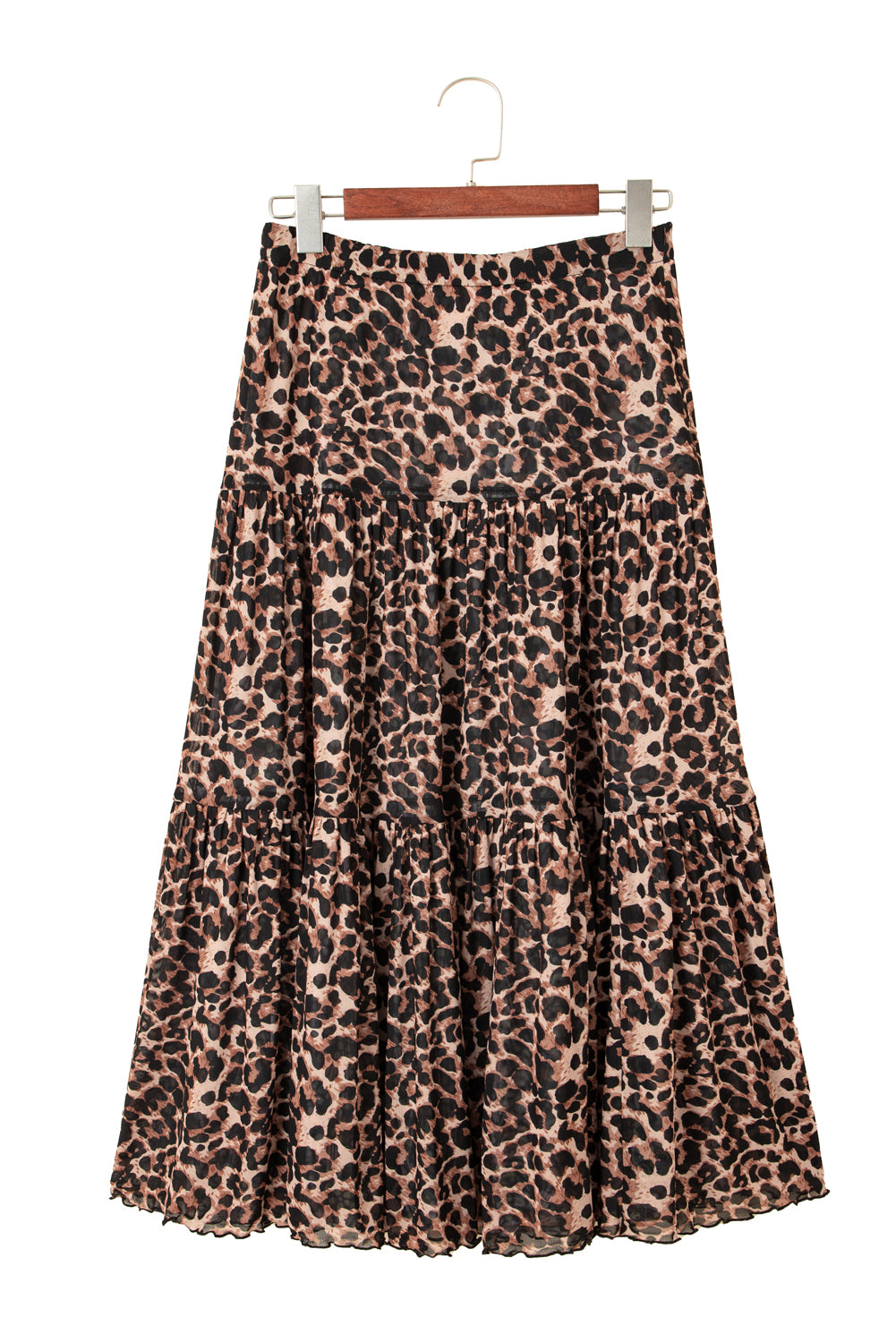Brown Leopard Floral Reversible Ruffle Hem Maxi Skirt