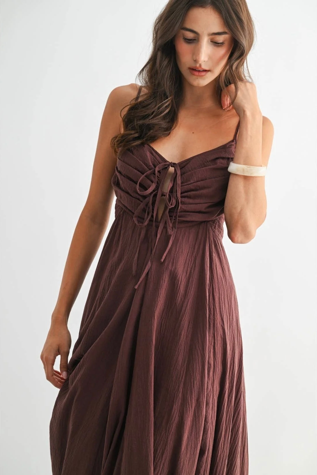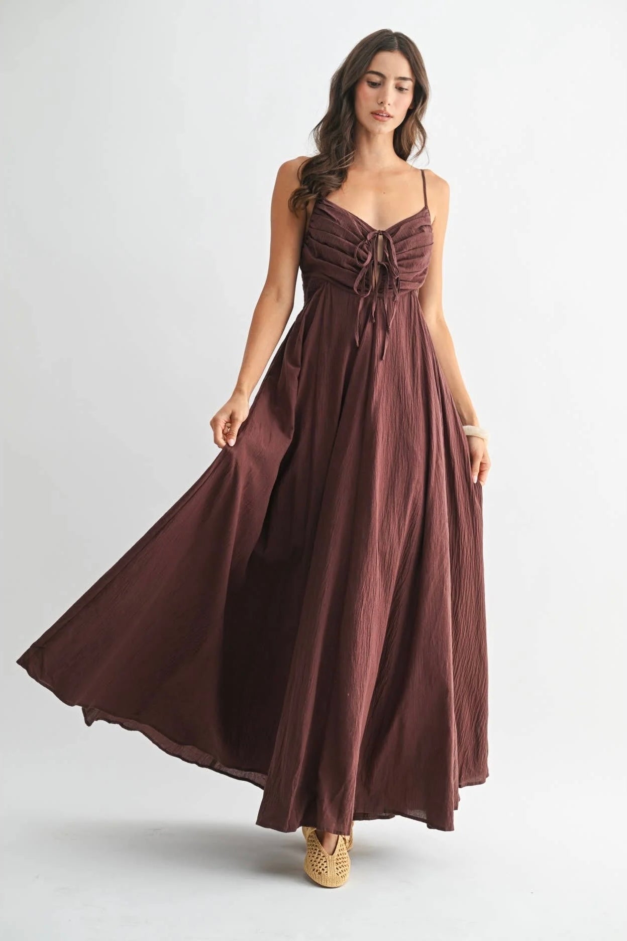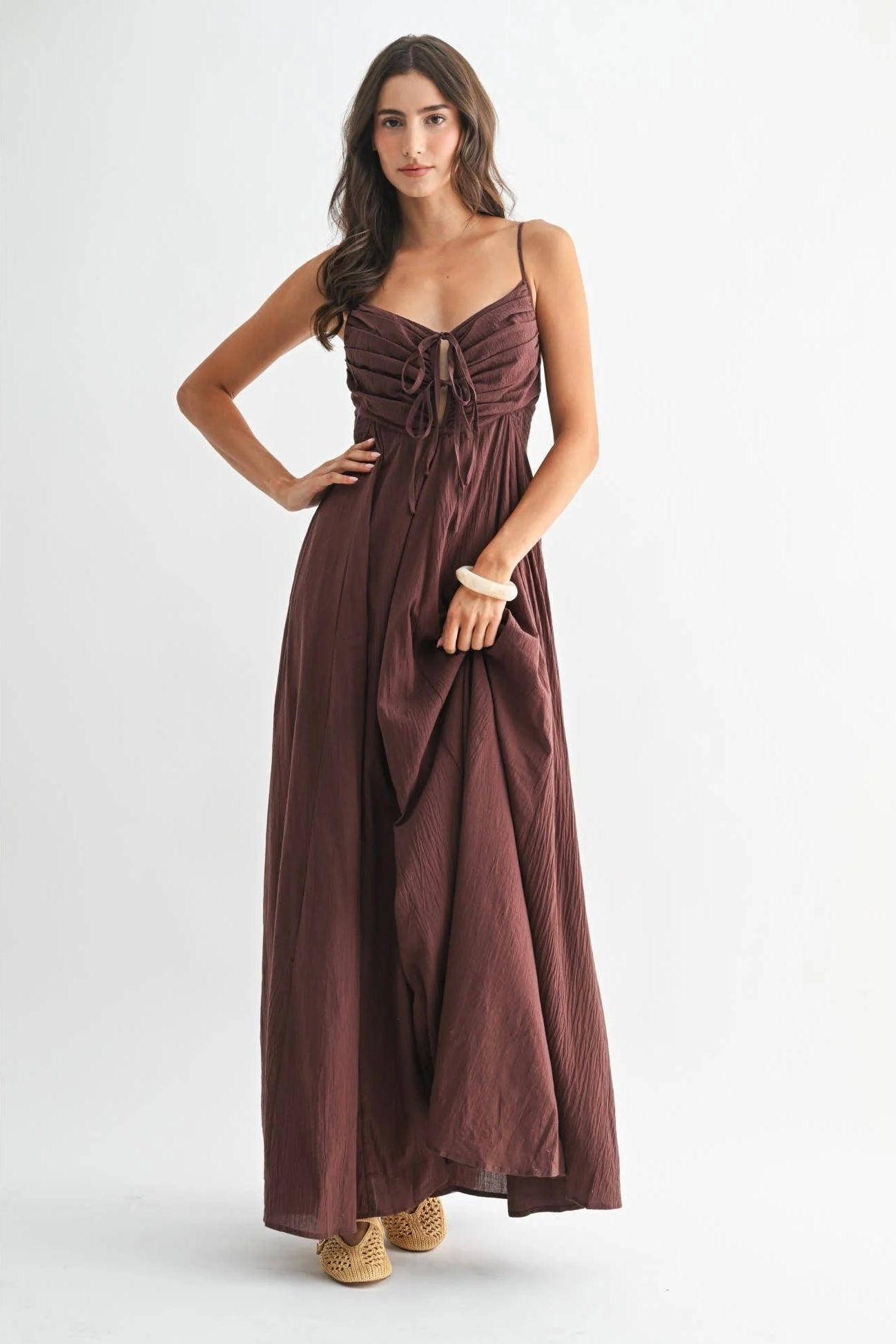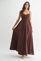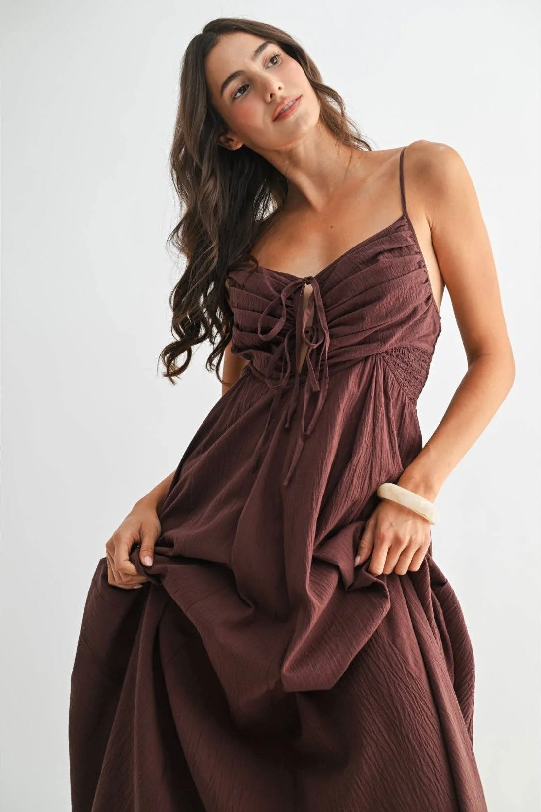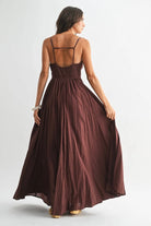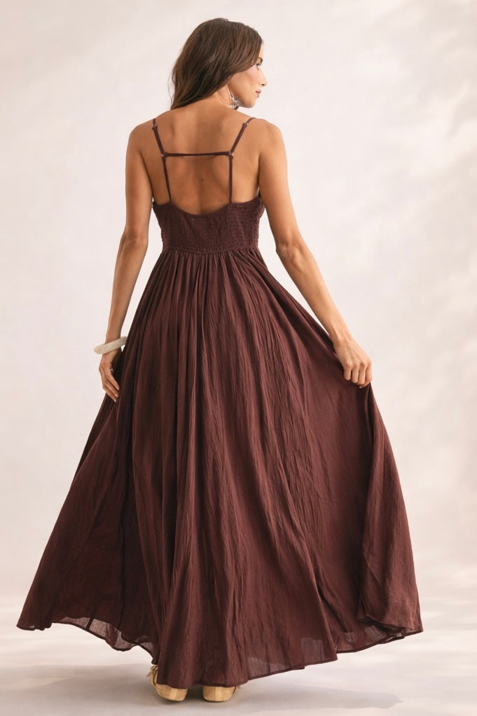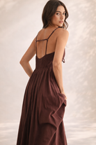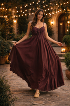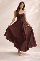 Romantic structure meets effortless movement in The Bordeaux Grace Ruched Maxi Dress. Designed in a deep brown with subtle burgundy undertones, this elevated maxi brings together timeless elegance and modern detail for a look that feels both polished and unforgettable.