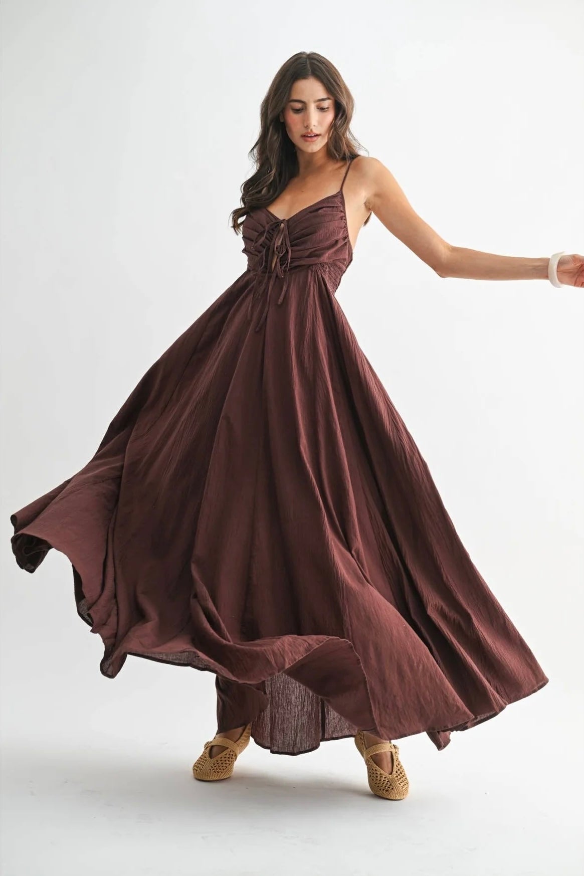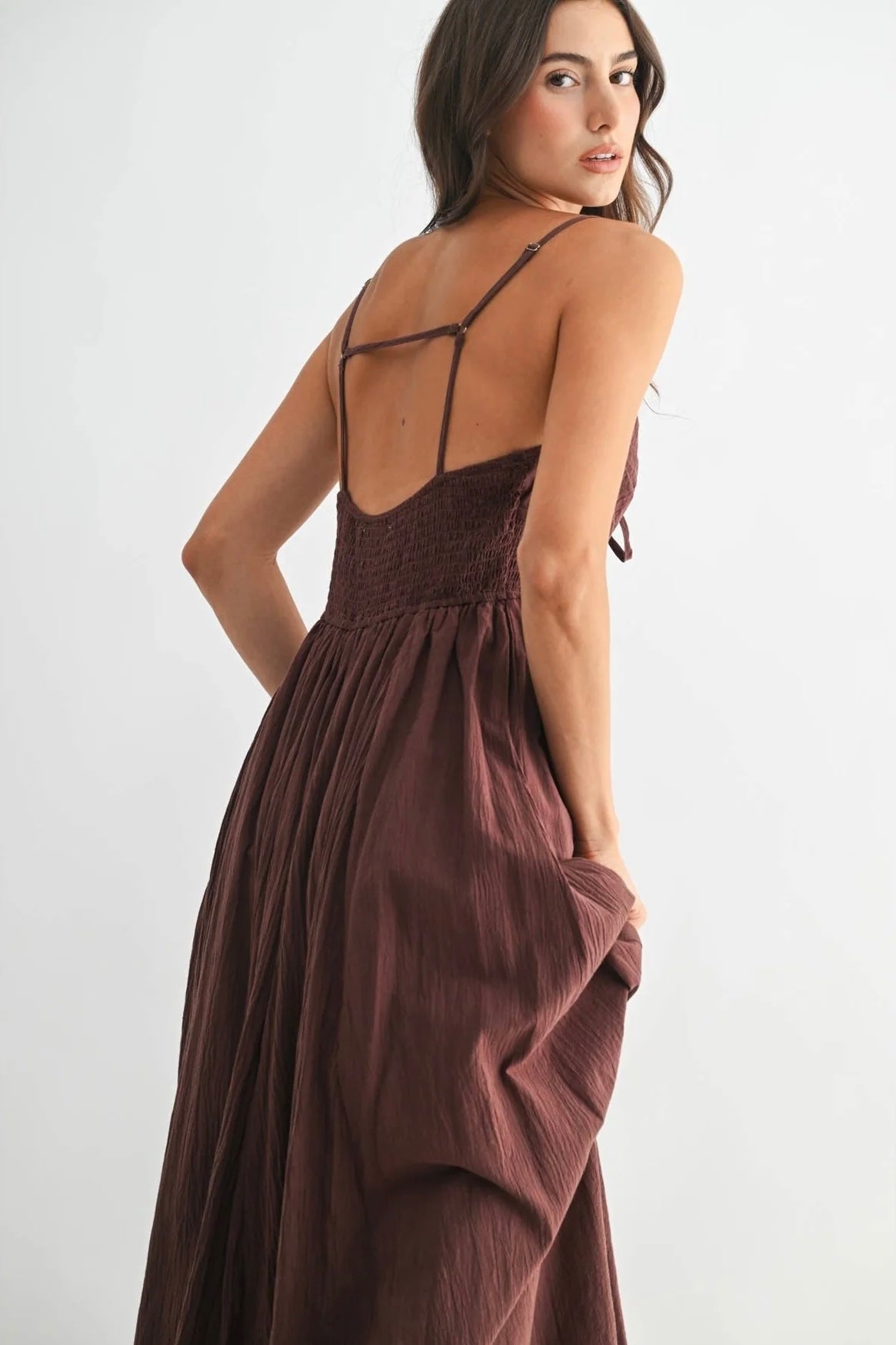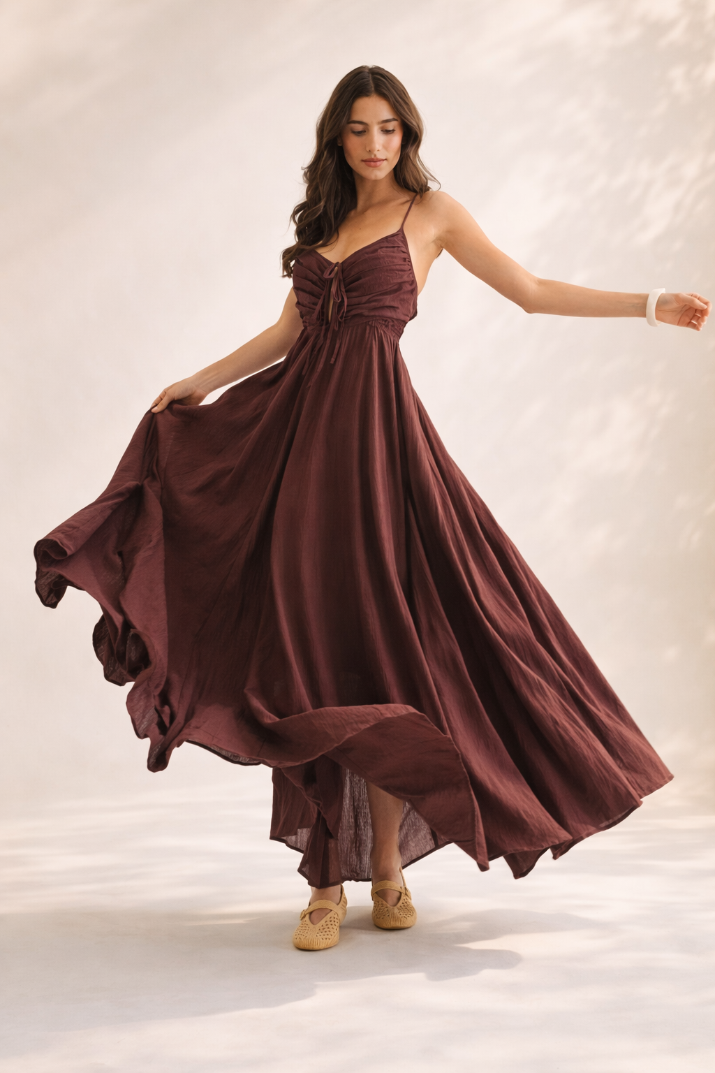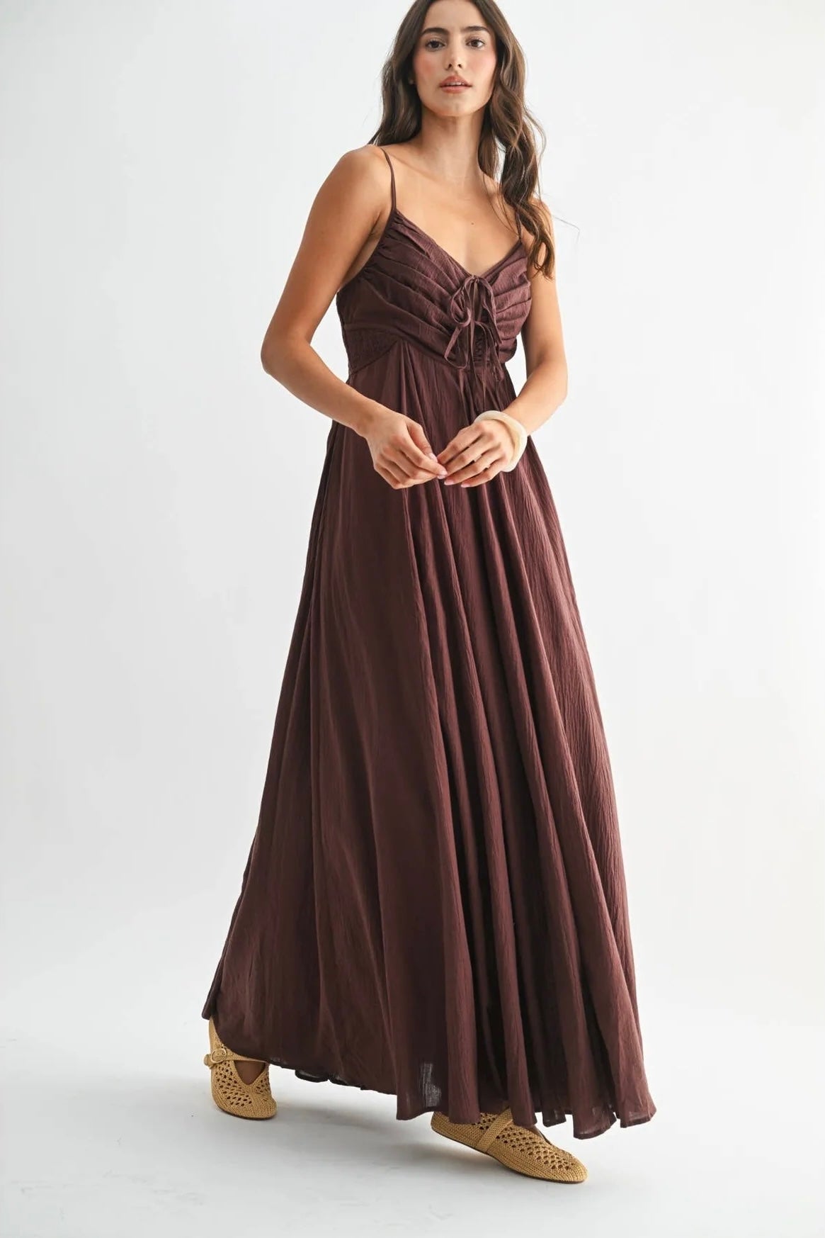 Romantic structure meets effortless movement in The Bordeaux Grace Ruched Maxi Dress. Designed in a deep brown with subtle burgundy undertones, this elevated maxi brings together timeless elegance and modern detail for a look that feels both polished and unforgettable.