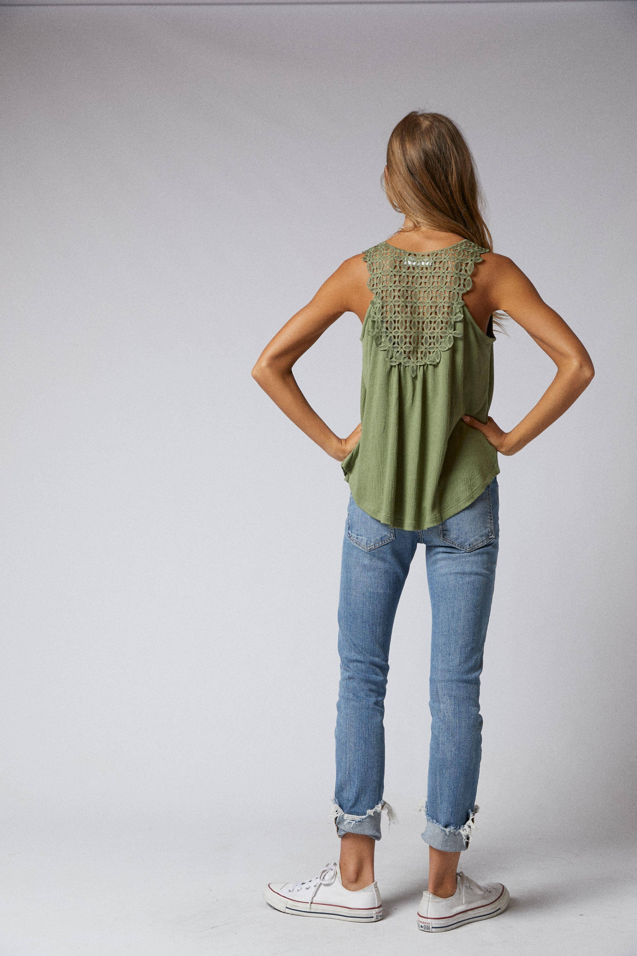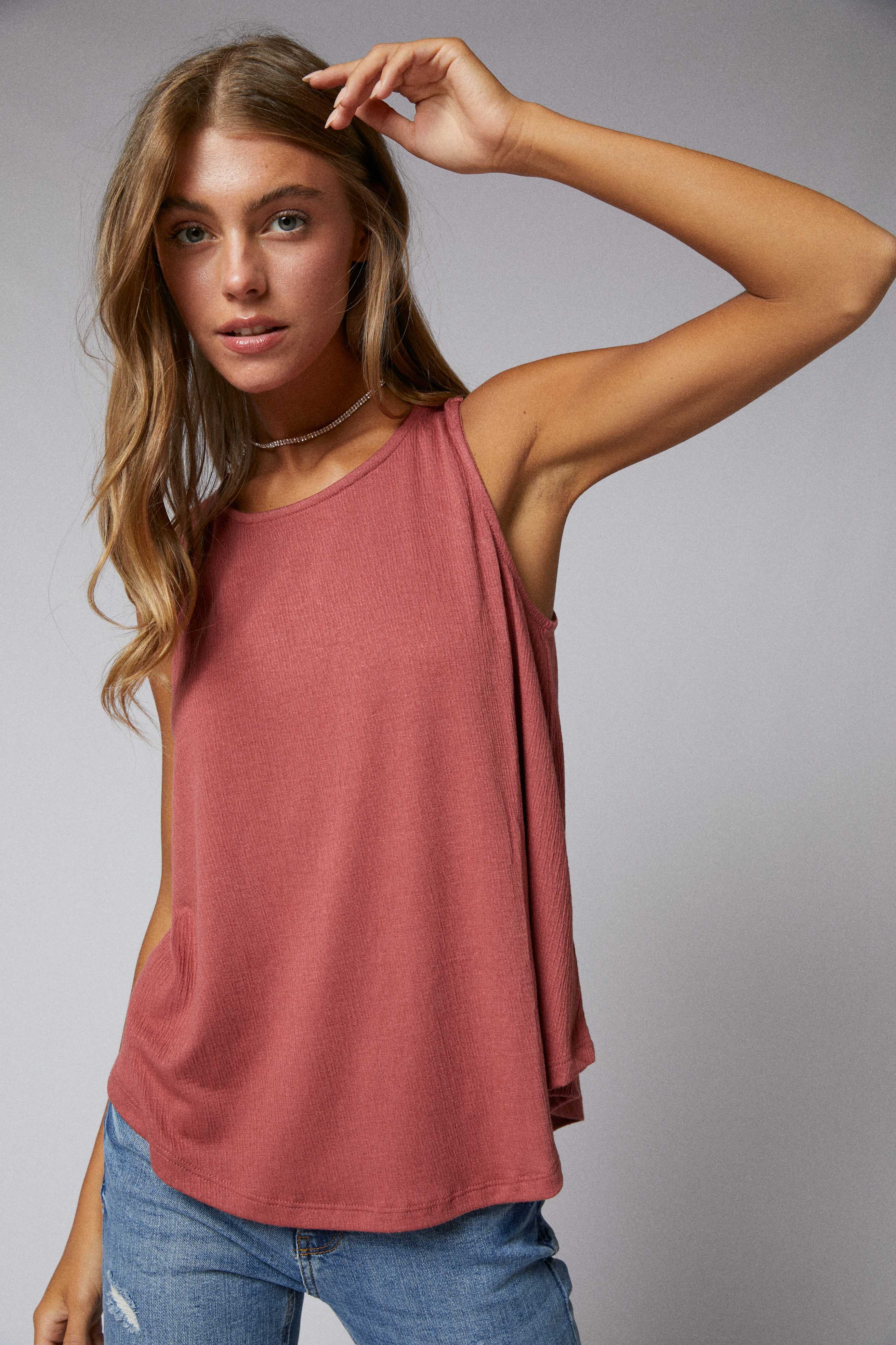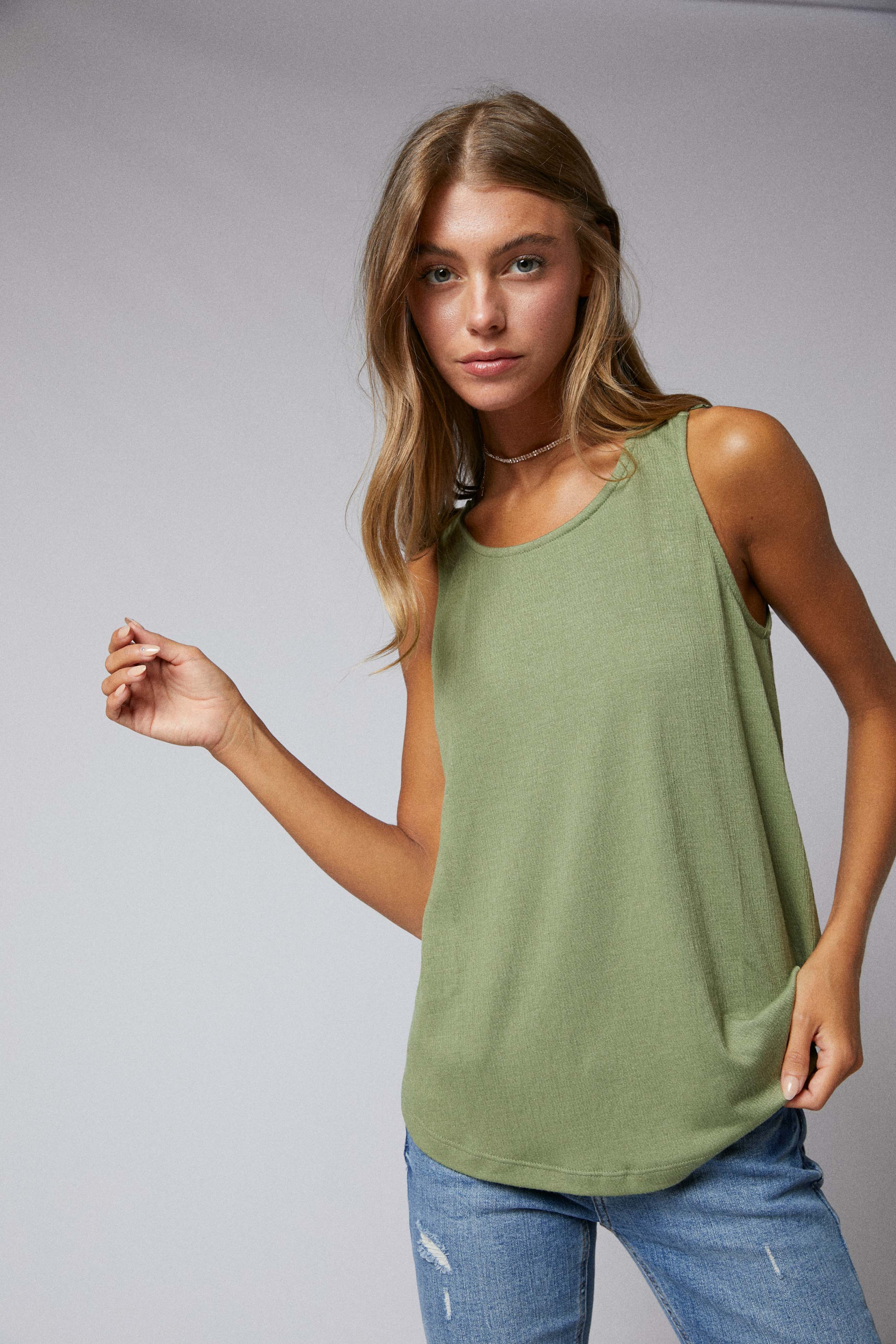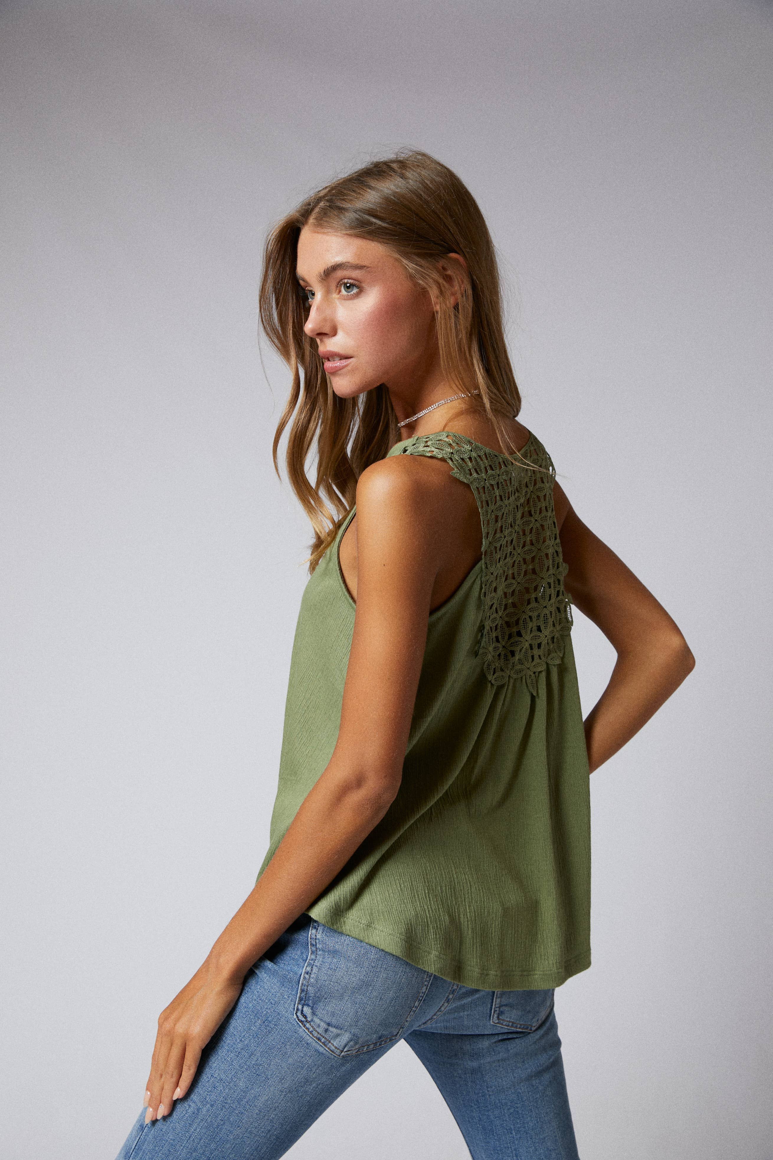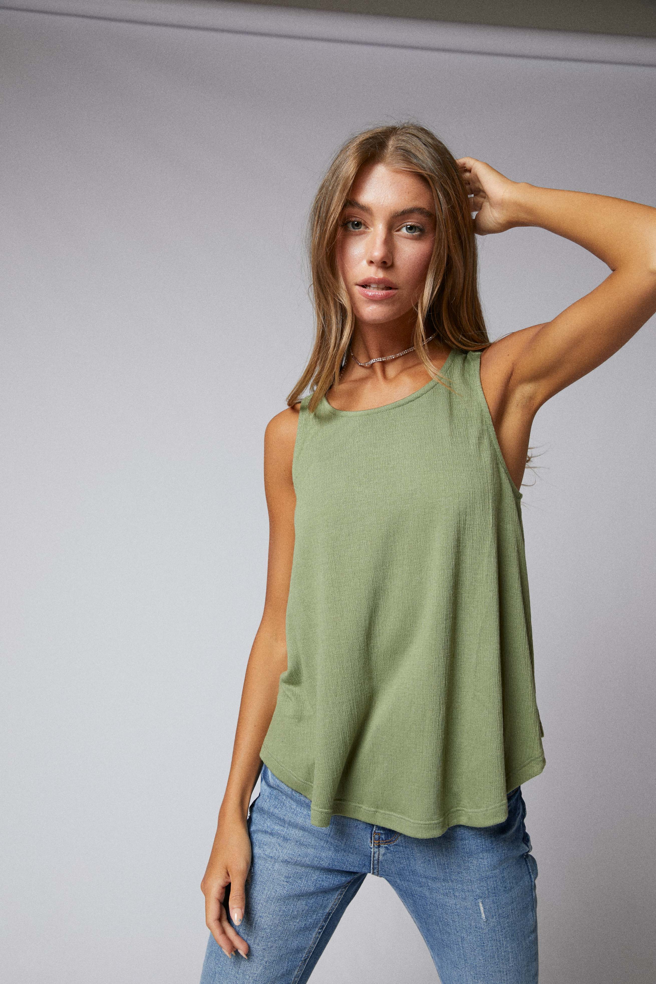 T5427-K41 Sleeveless Back Lace Patch Crinkle Knit Swing Top