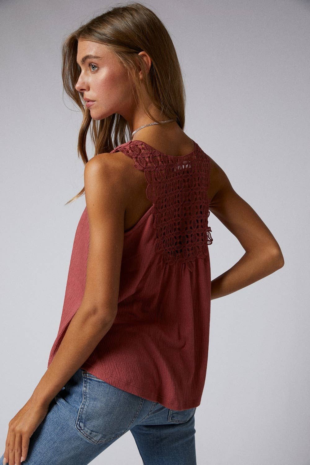 Sleeveless Back Lace Patch Crinkle Knit Swing Top