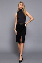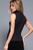 Active Basic | Active USA - Sleeveless High Neck Rib Sweater Top in Charcoal Grey