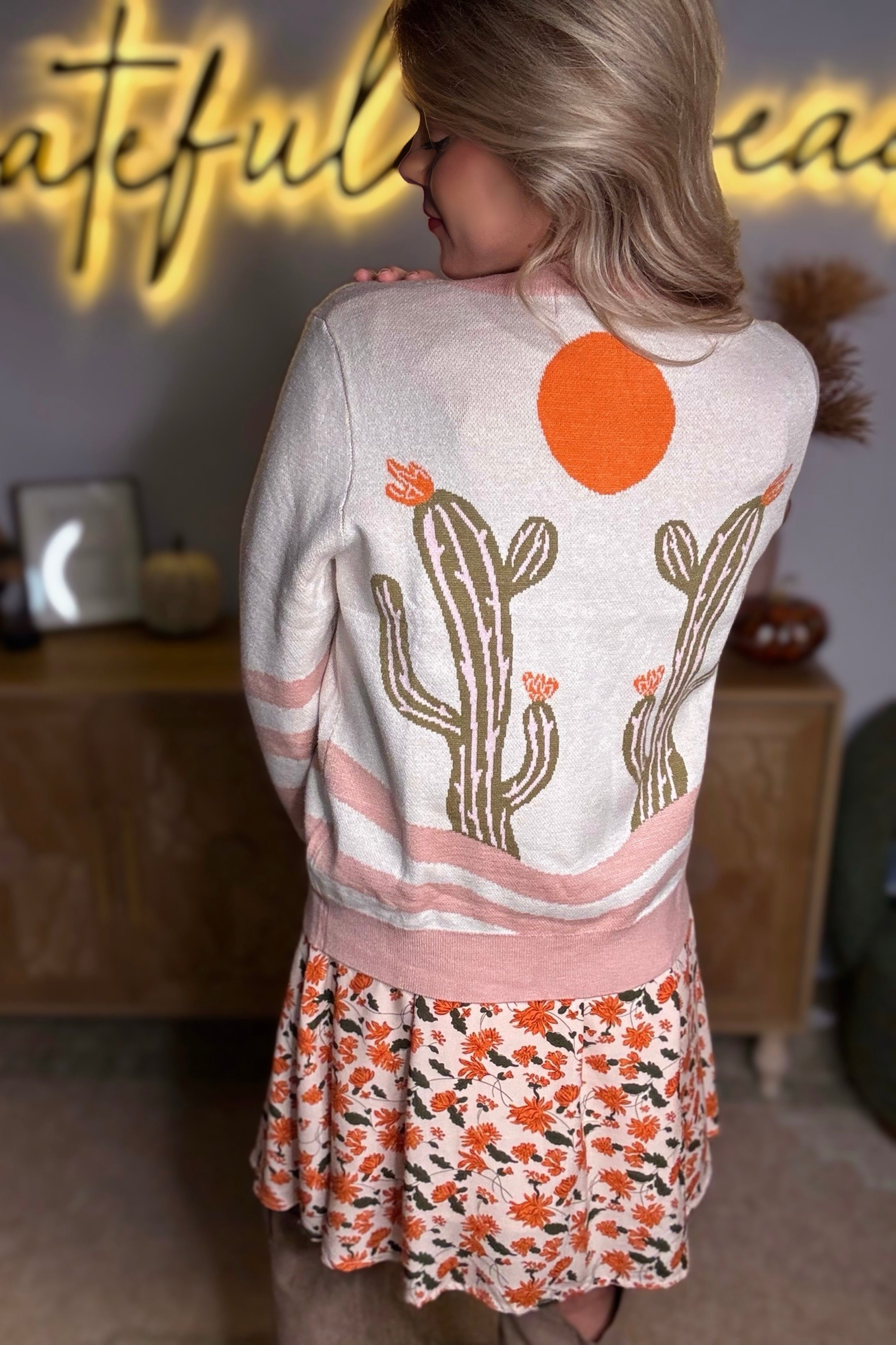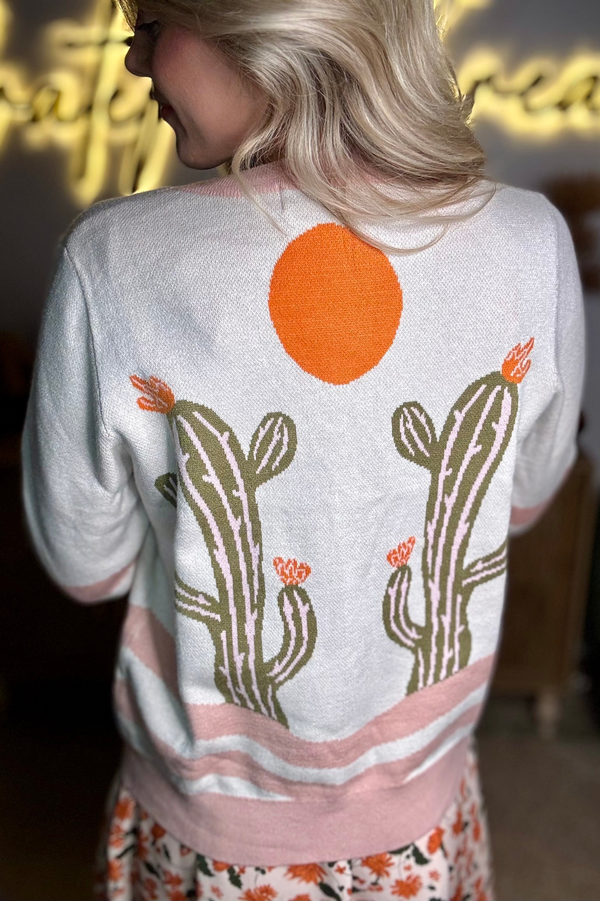 Apricot Desert Cactus Buttoned Front Sweater Cardigan