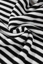 Black white Striped Drop Shoulder Bishop Sleeve Knit Sweater