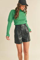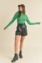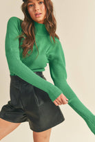 &merci Kelly Green Ribbed Mock Neck Sweater