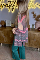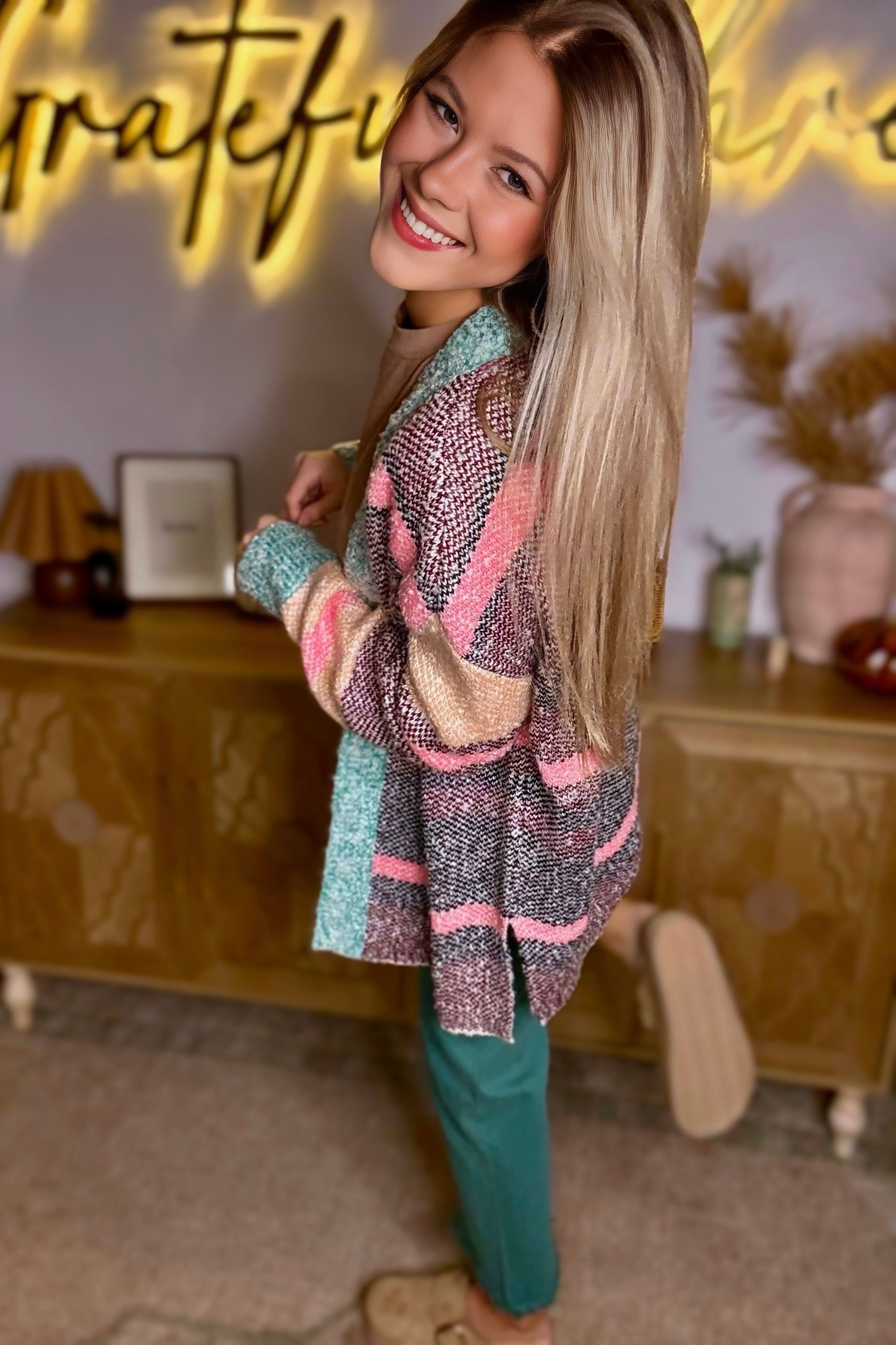 Multicolor Color Block Striped Side Slit Open Front Cardigan