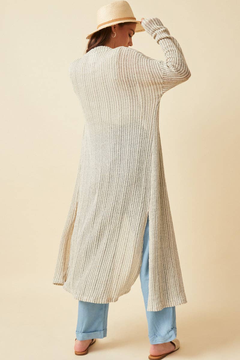 Hayden LA - Women's Textured Stripe Loose Knit Side Slit Duster: Oatmeal
