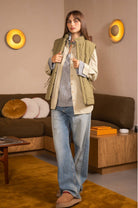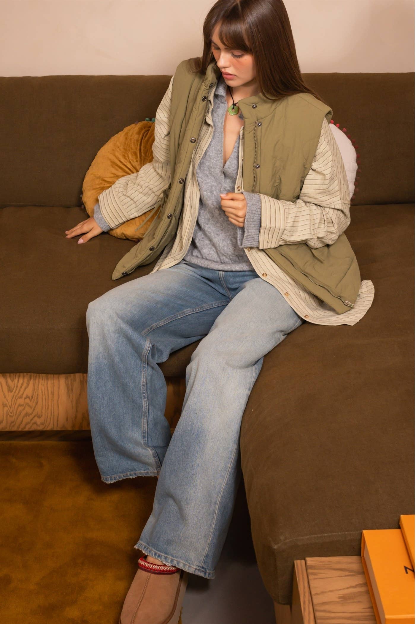This sleeveless quilted vest is perfect for layering over long-sleeve tops, sweaters, hoodies, or even dresses during cooler months. The stand collar neckline provides extra warmth, while the relaxed fit keeps it comfortable and easy to style. Whether you’re running errands, heading to brunch, or building a cozy fall outfit, this olive puffer vest brings both function and fashion.
