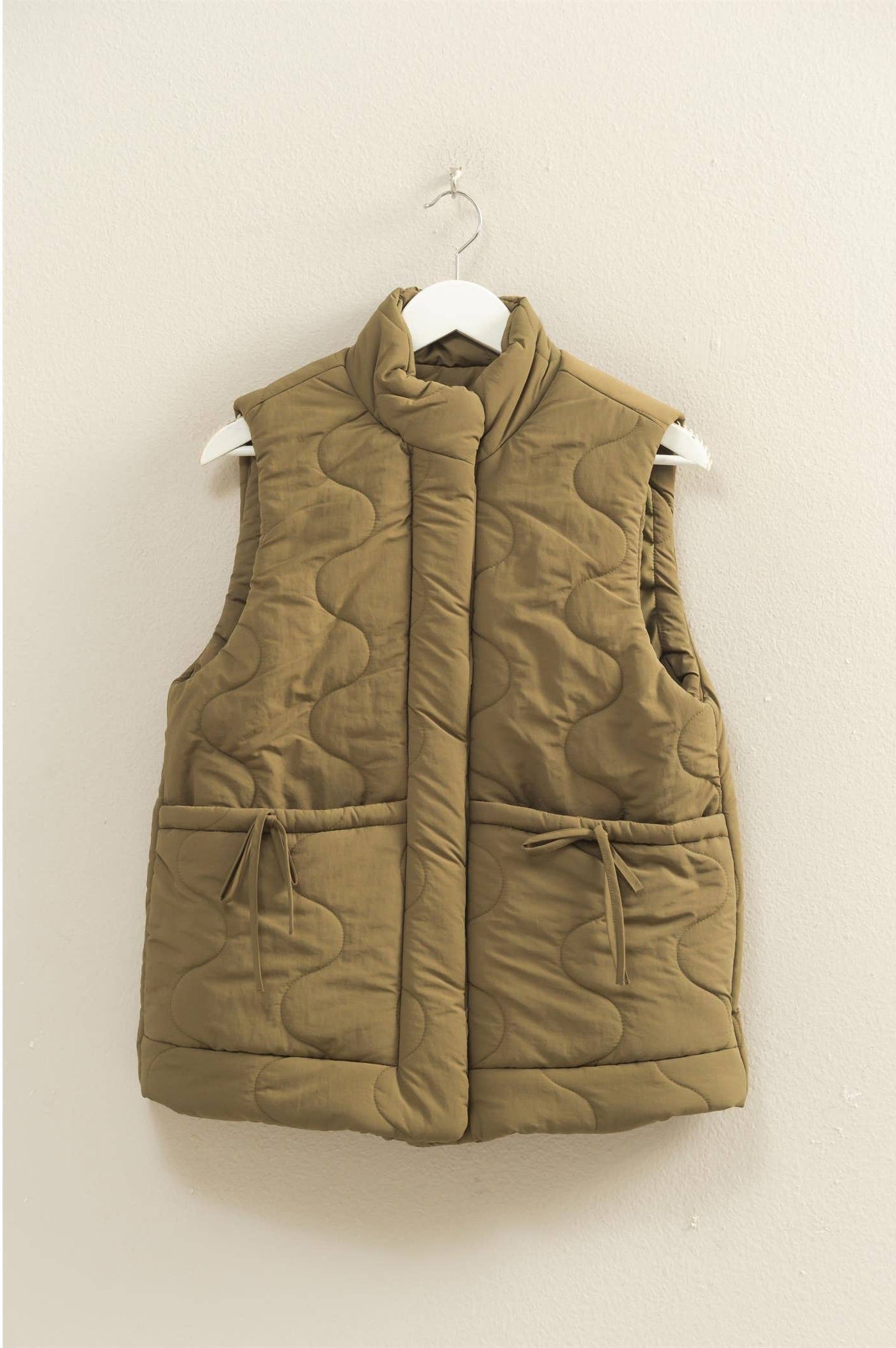 HYFVE - Olive Wave Quilted Ribbon Tie Detailed Puffer Vest