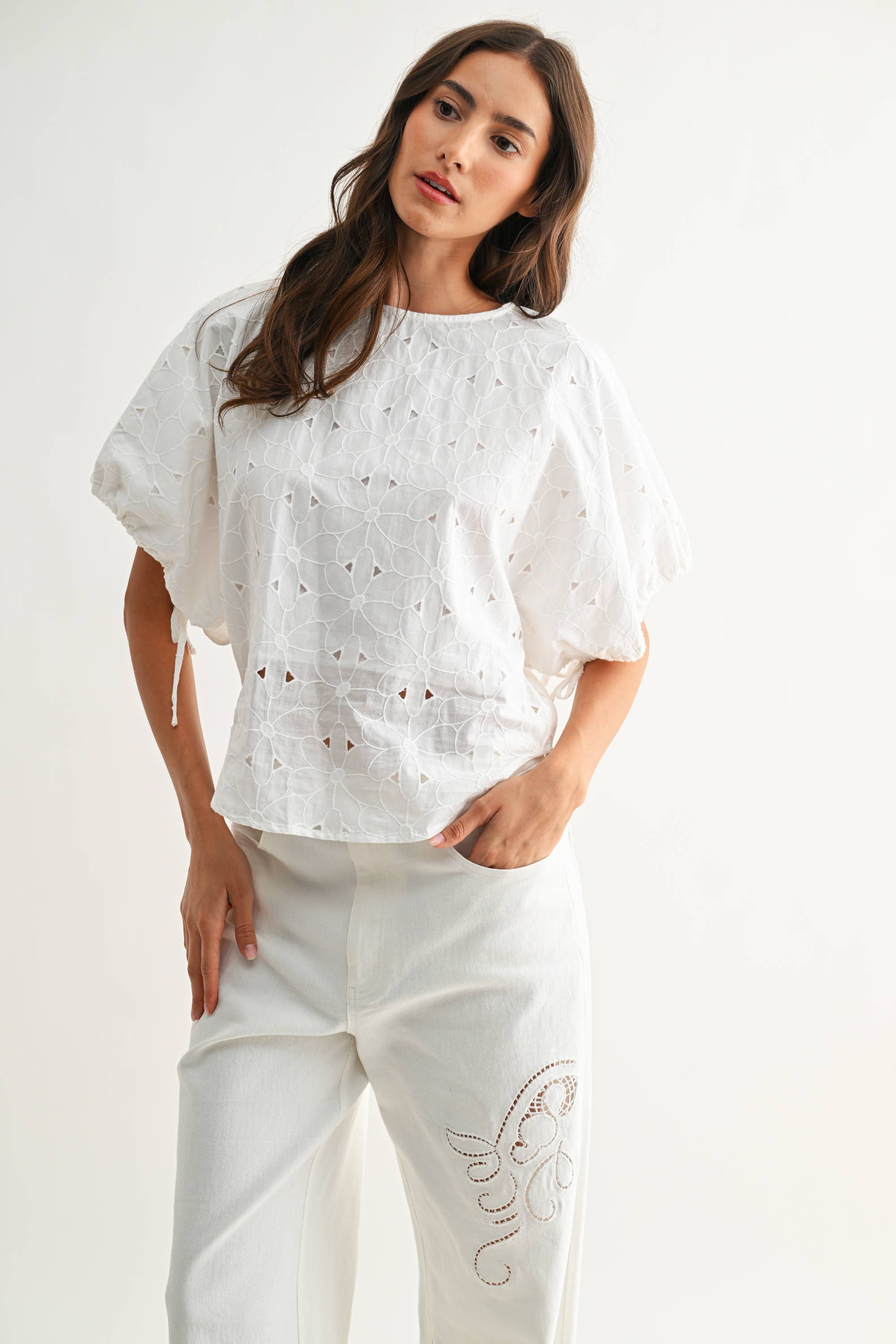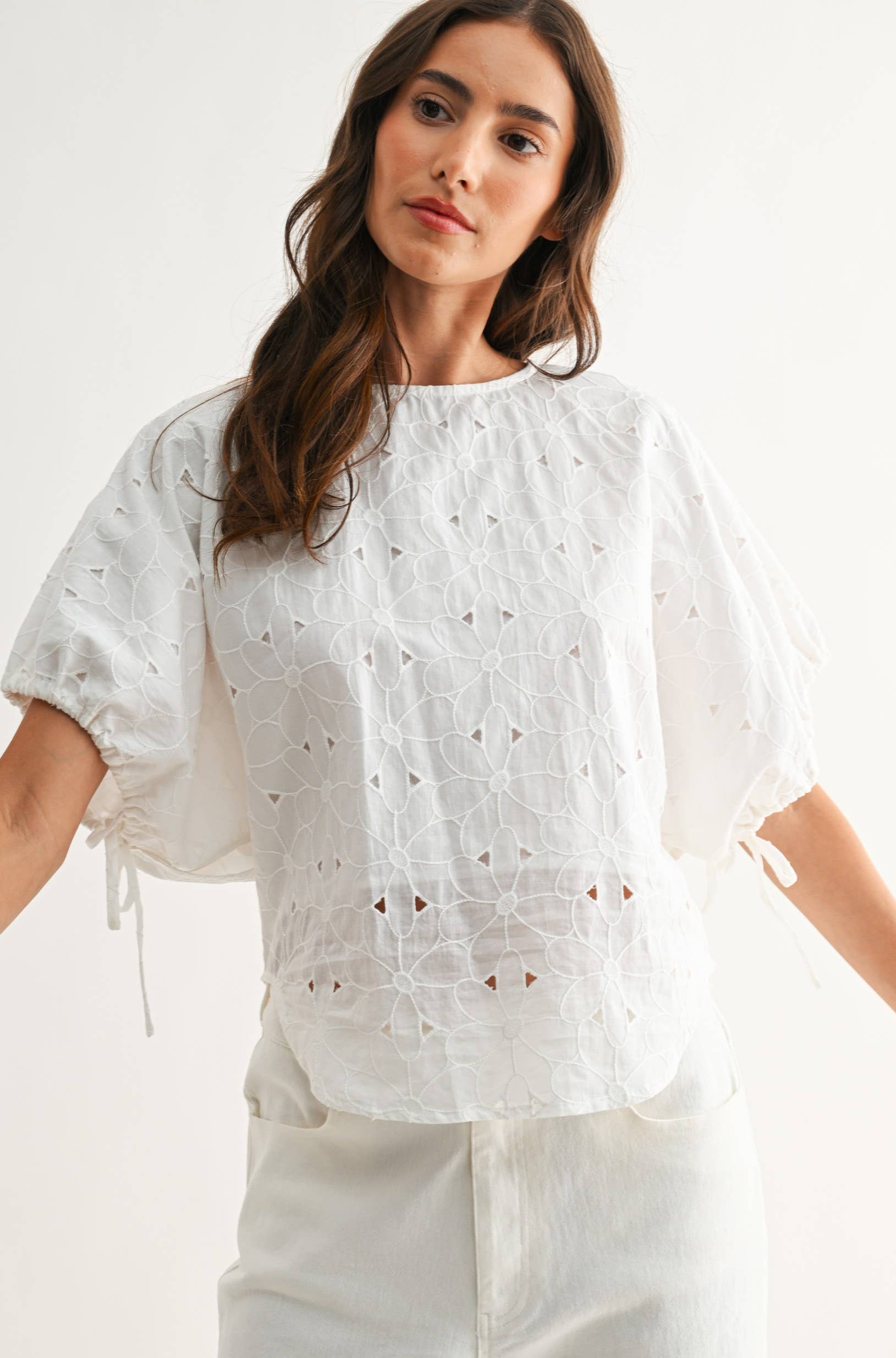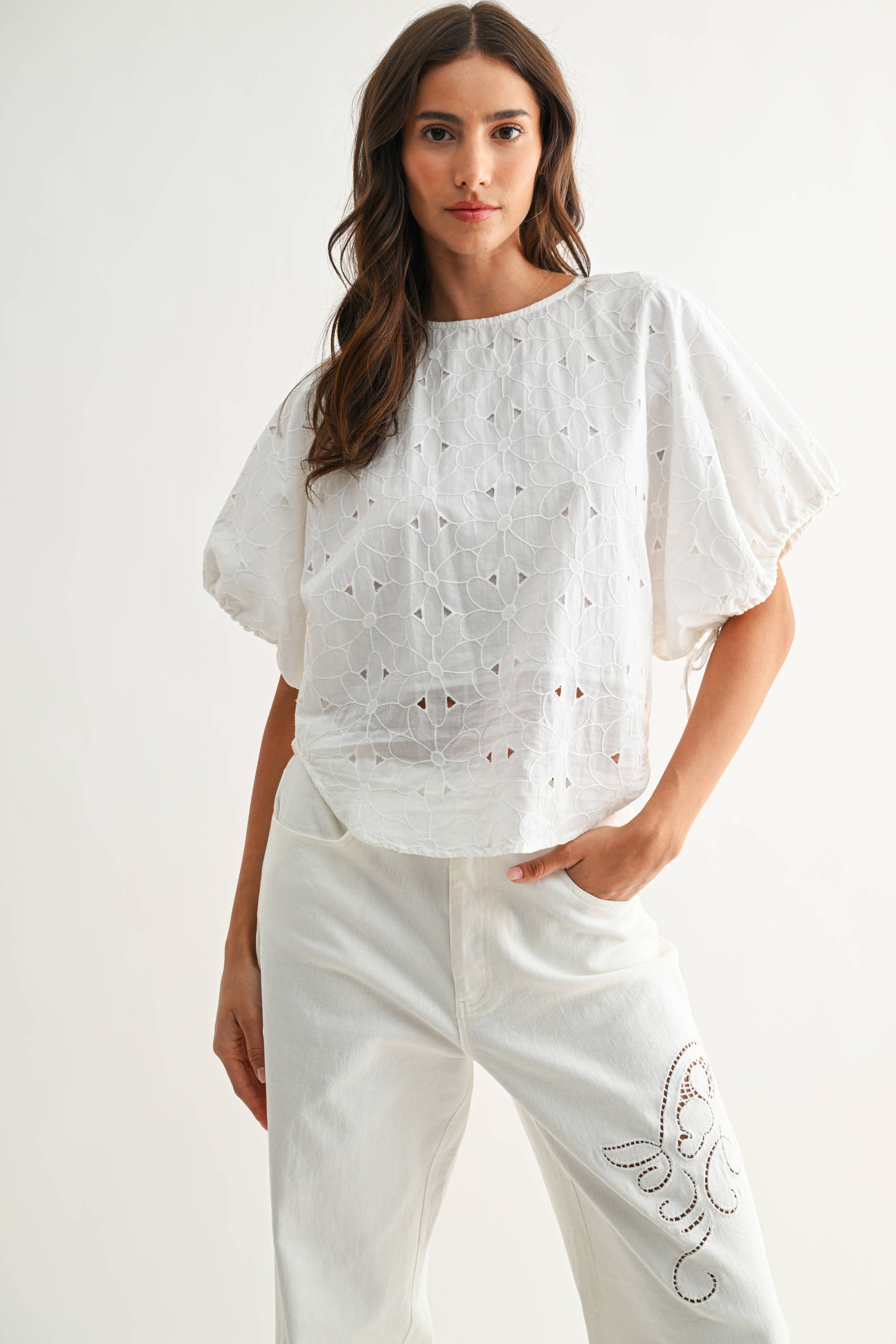 The Heirloom Stitch Floral Eyelet Cotton Top – Off White