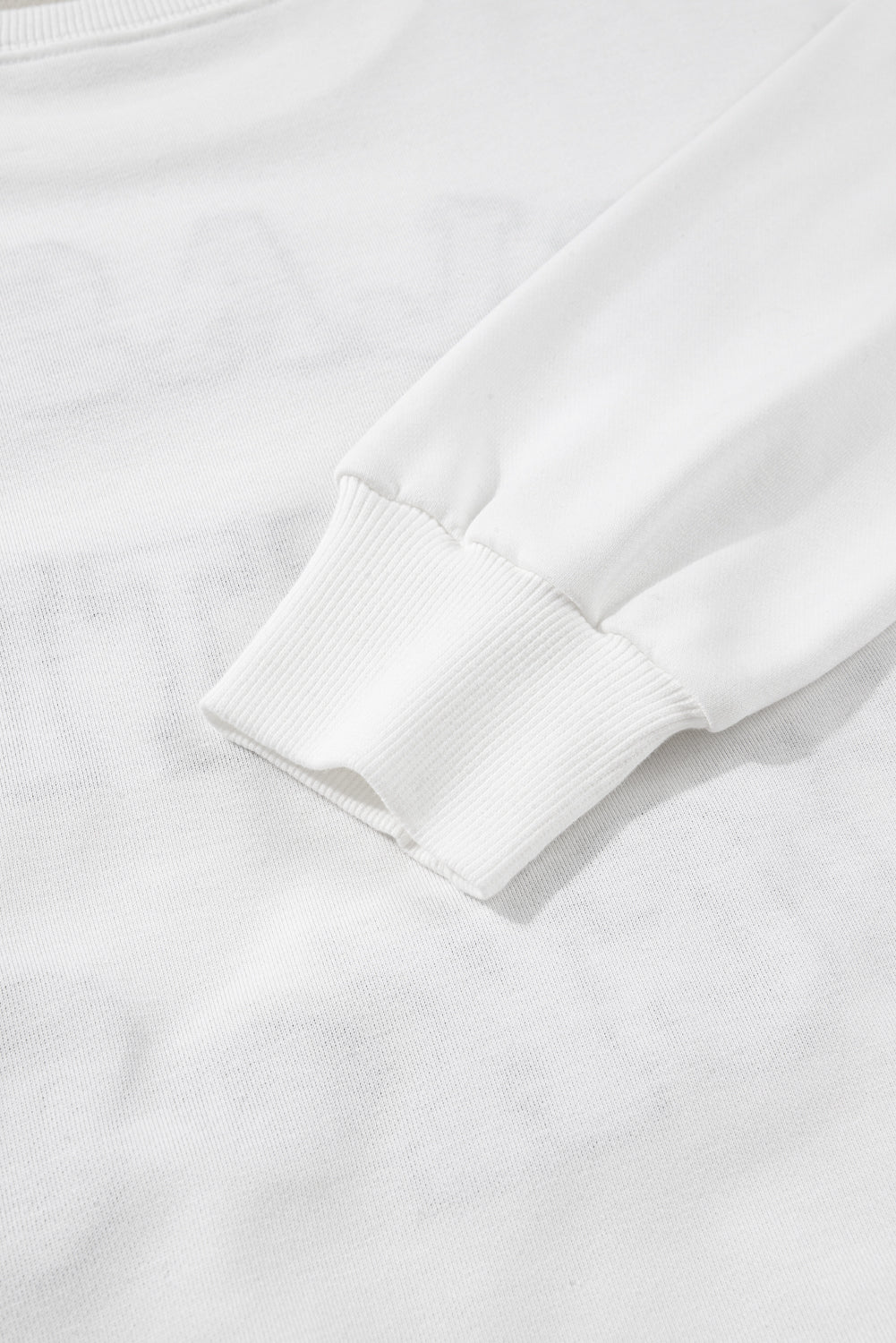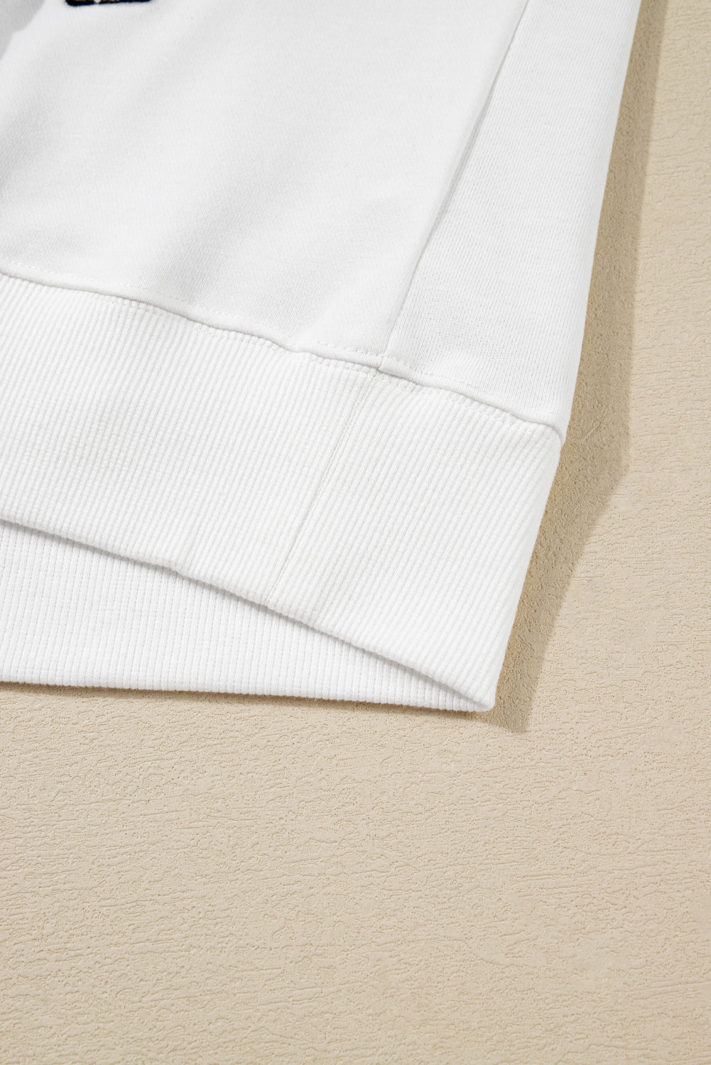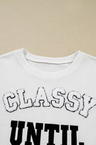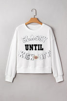White CLASSY UNTIL KICKOFF Plush Letter Patched Loose Sweatshirt