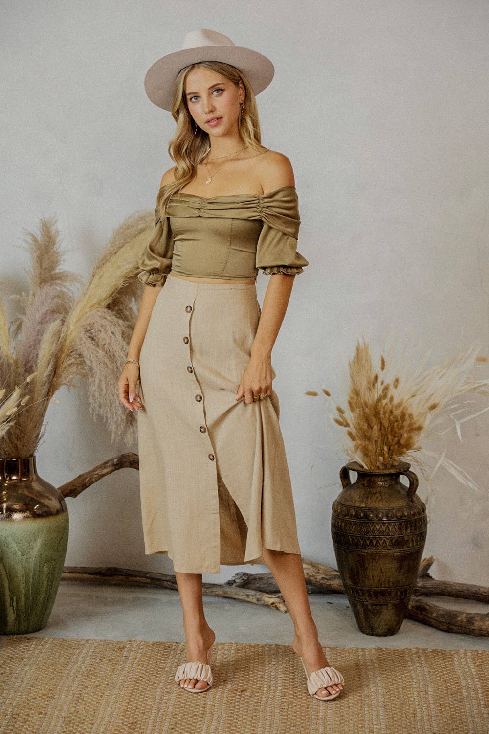 Endless Blu Sage Ruched Detail Off Shoulder Top