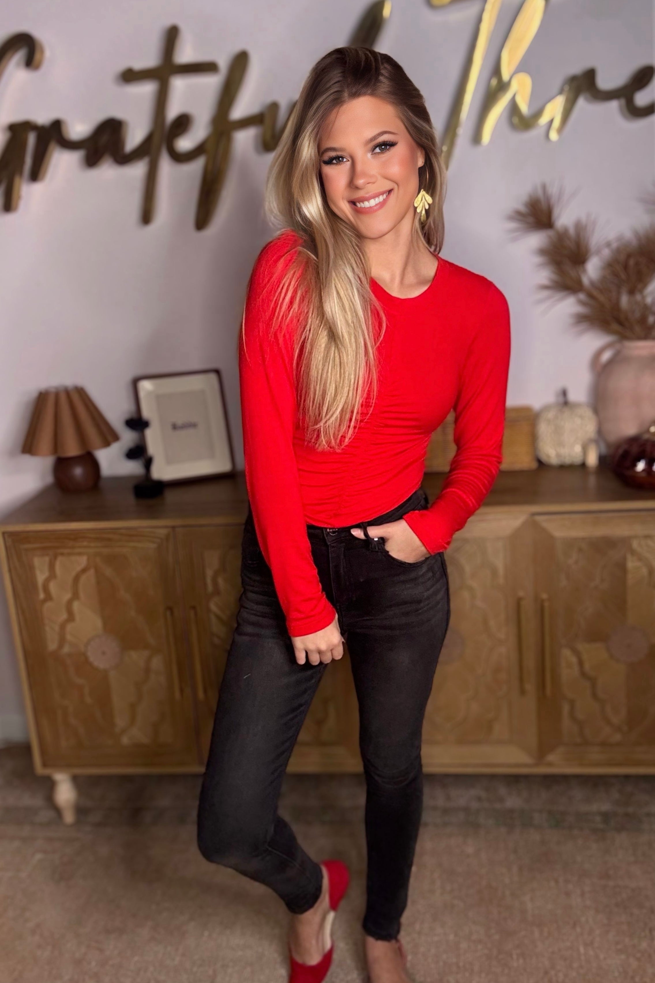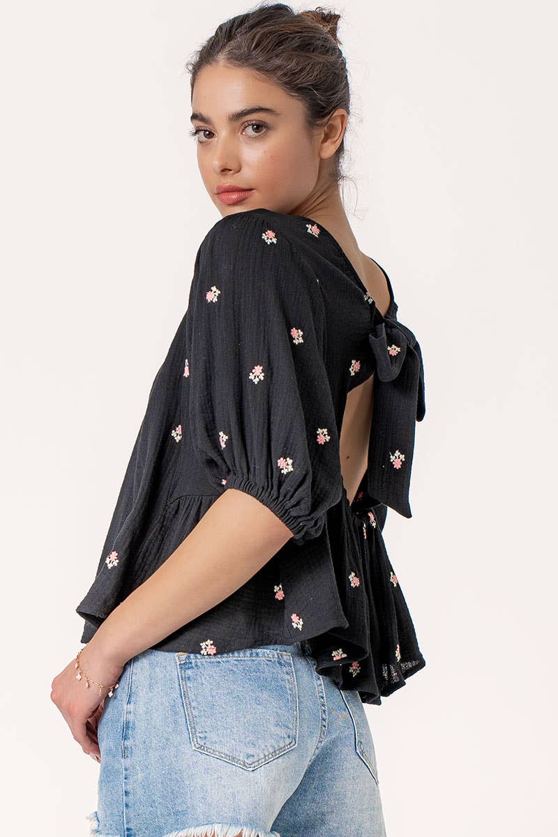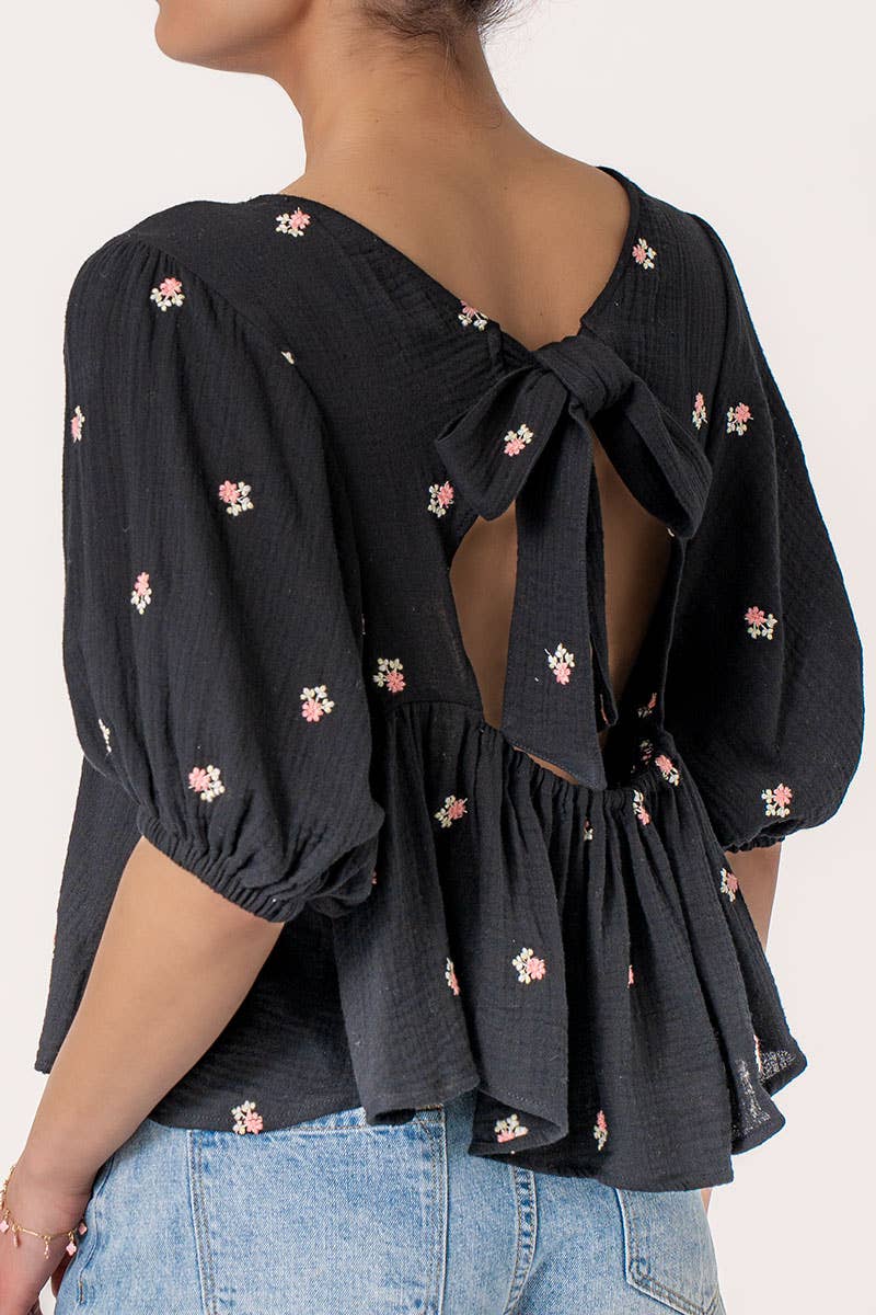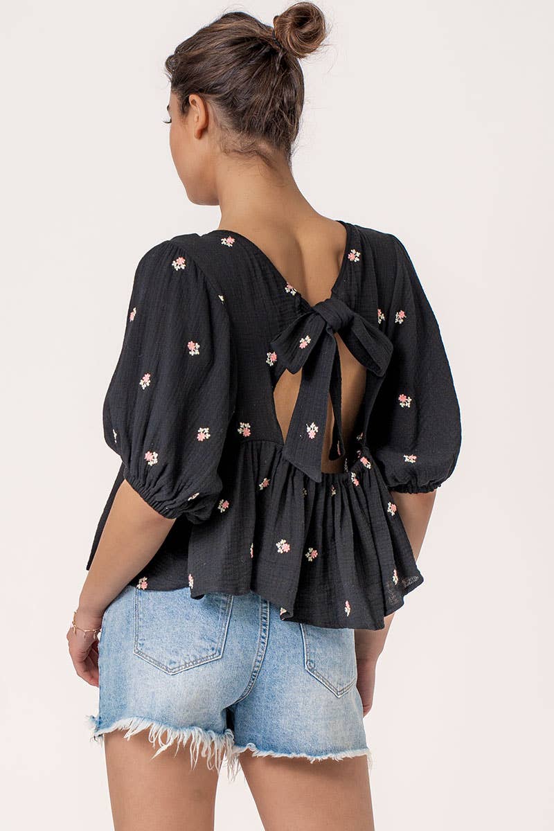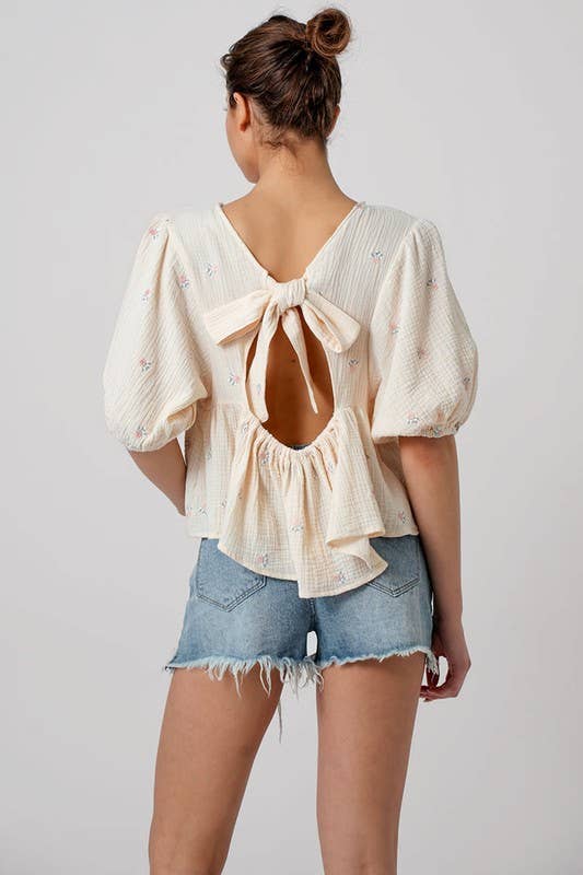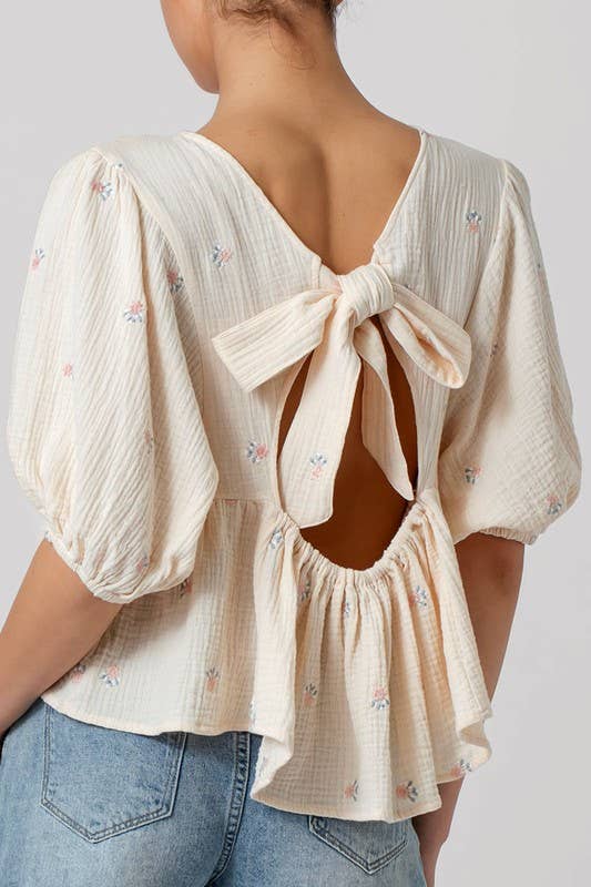 Long Sleeve Cinched Open Back Top