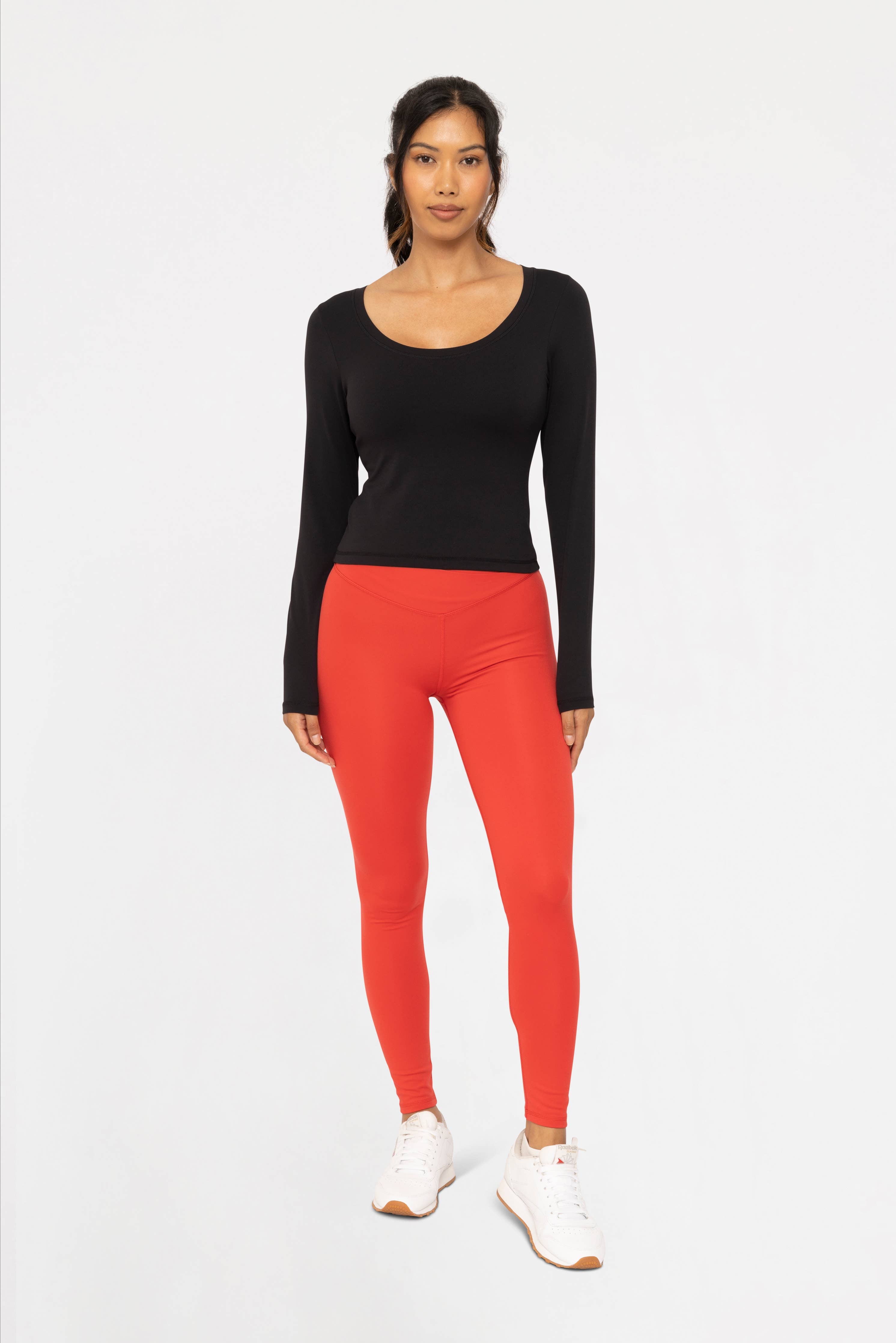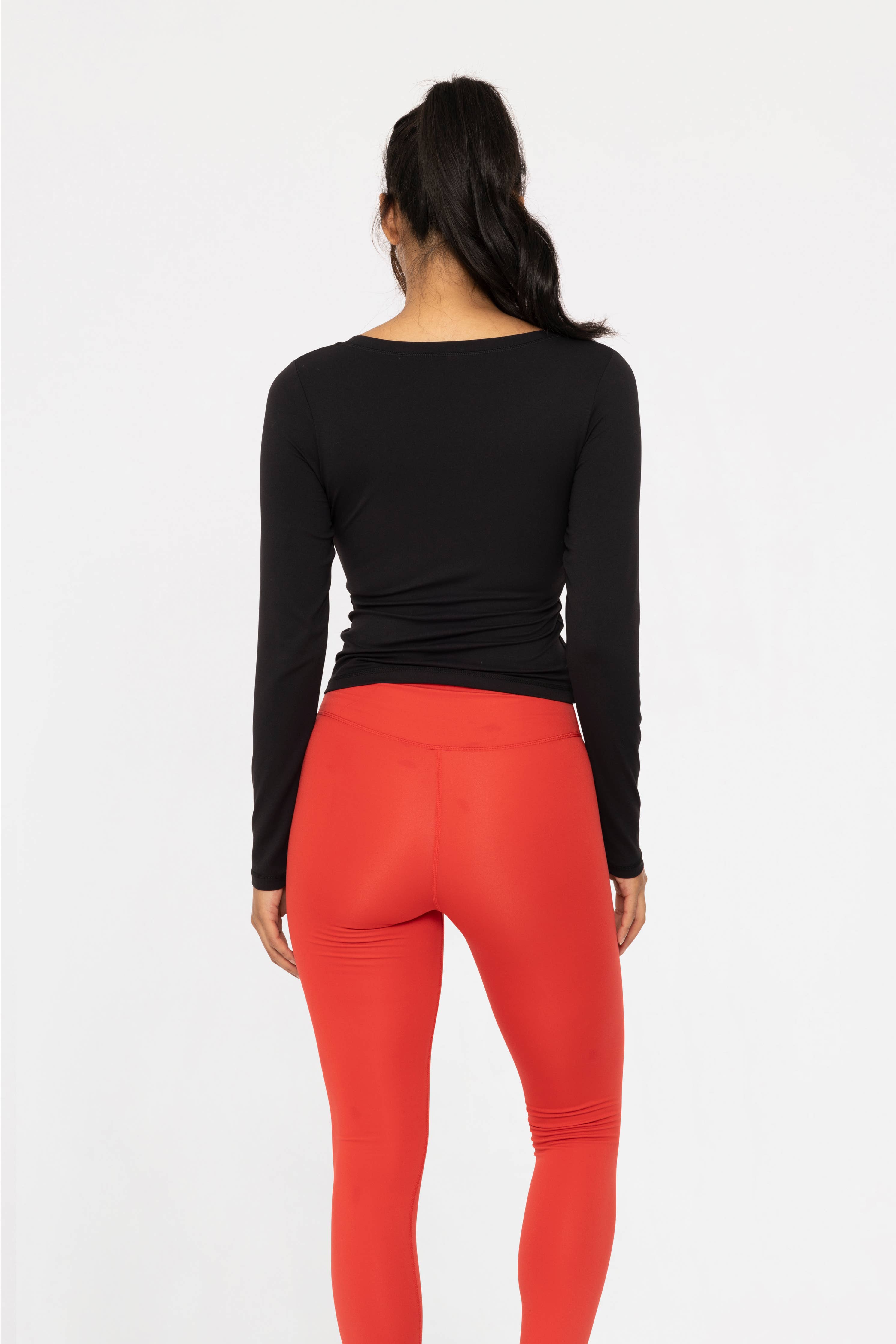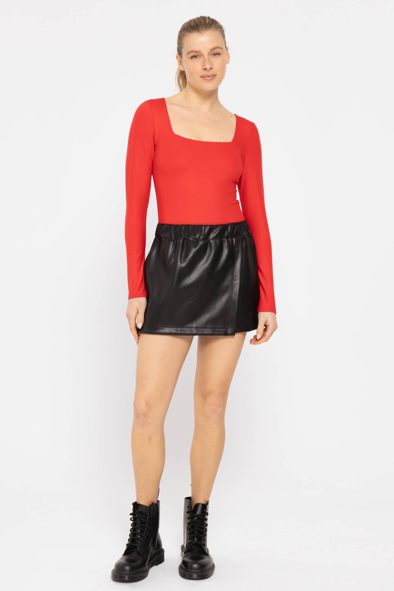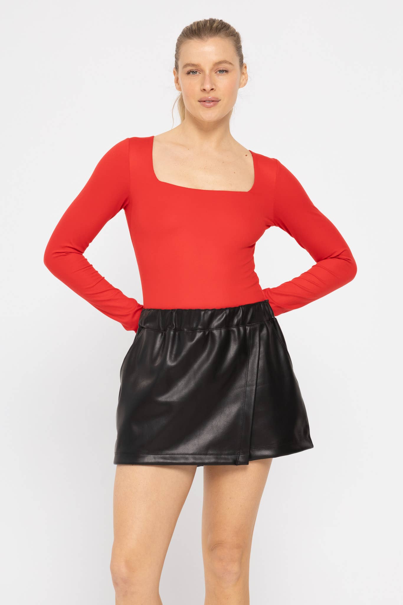 Mono B - Red Long Sleeve Square Neck Bodysuit