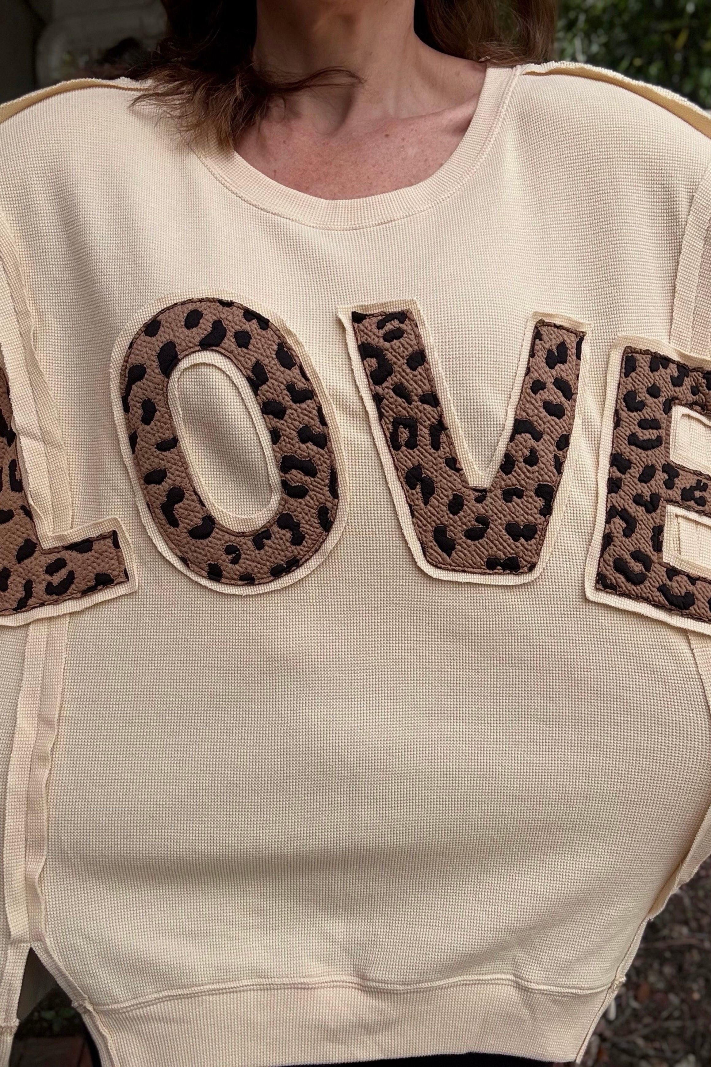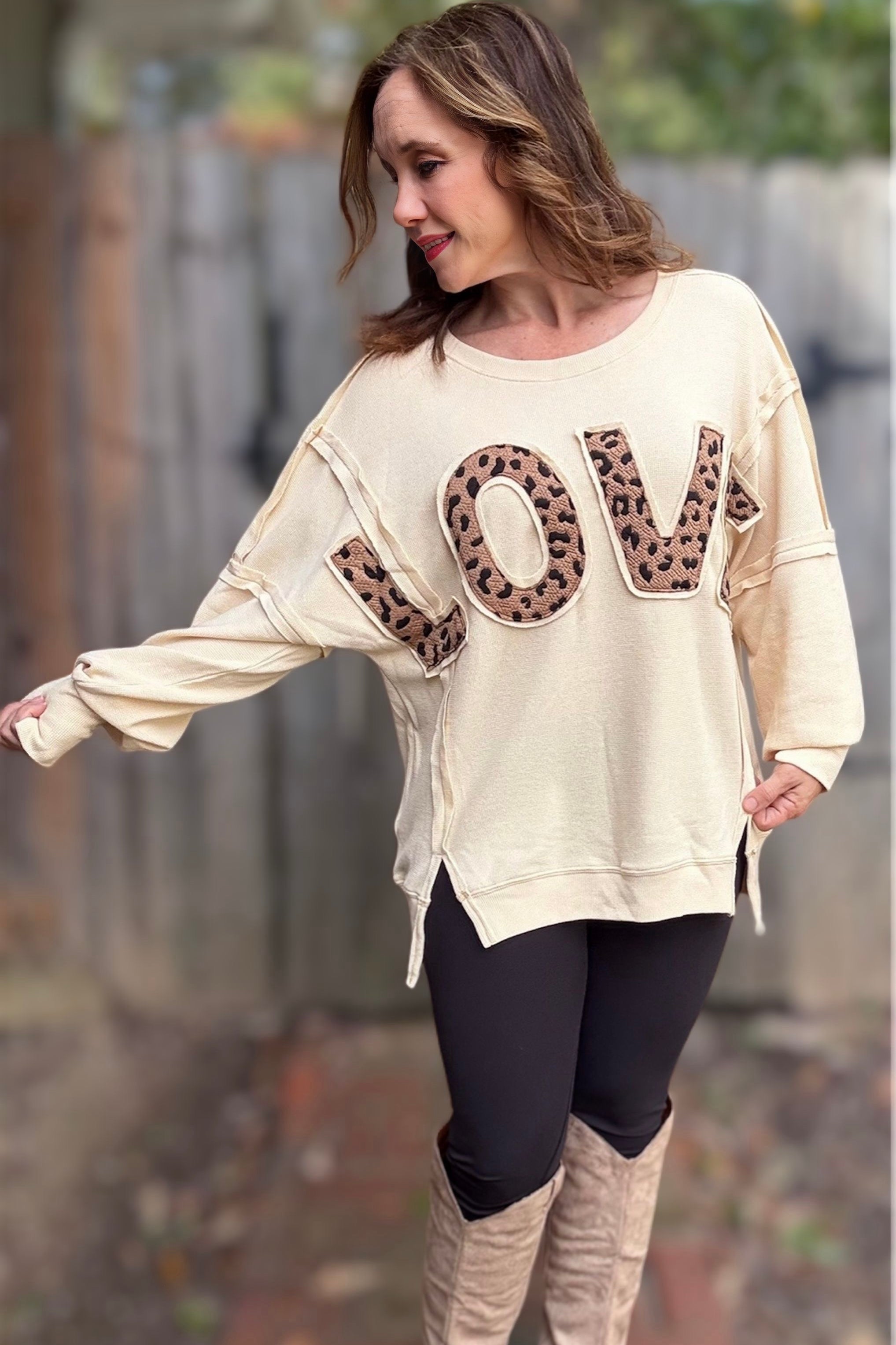 Dark Gray LOVE Valentine Graphic Exposed Seam Patchwork Uneven Hem Chic Sweatshirt