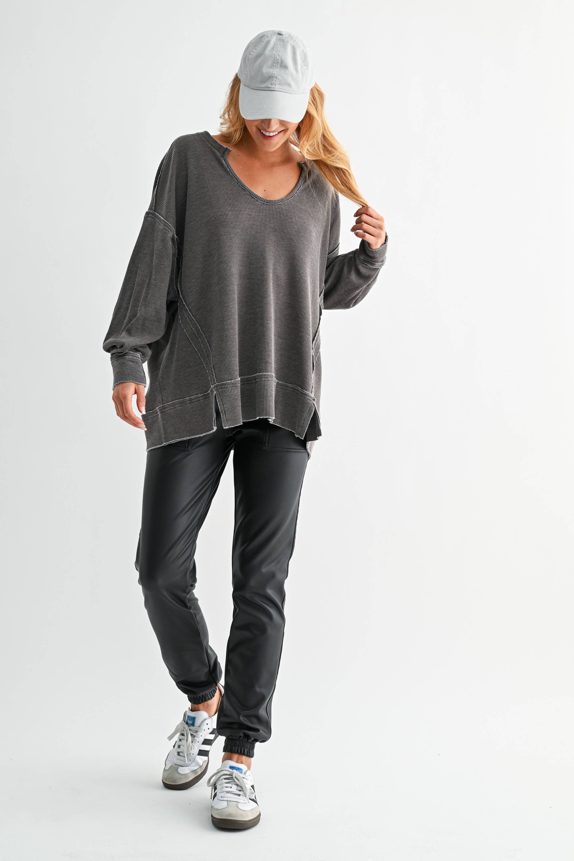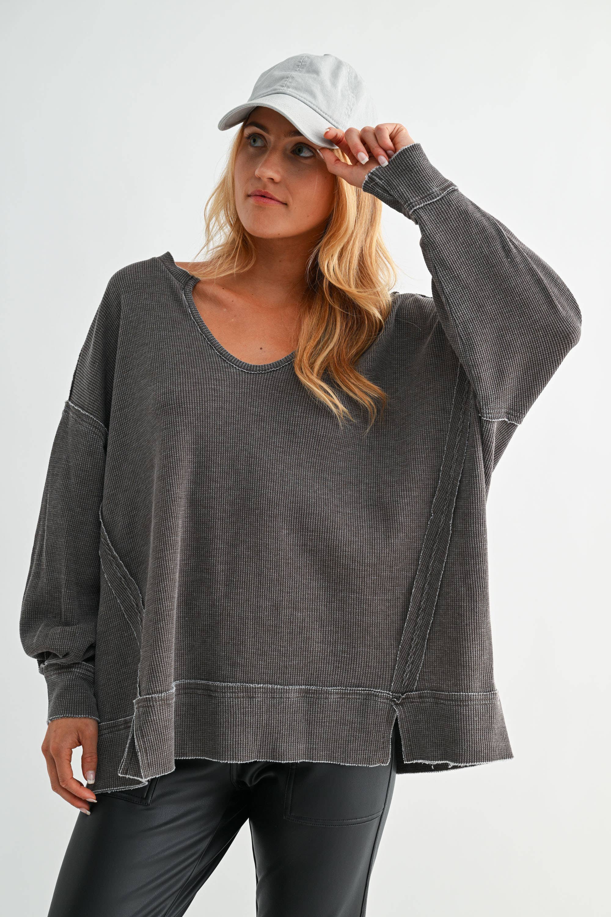 Mono B - Cotton Blend Waffle Knit Oversized Long Sleeve
