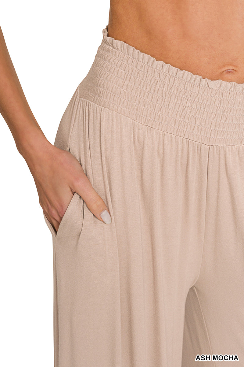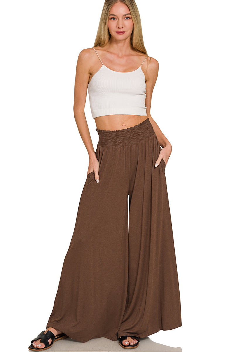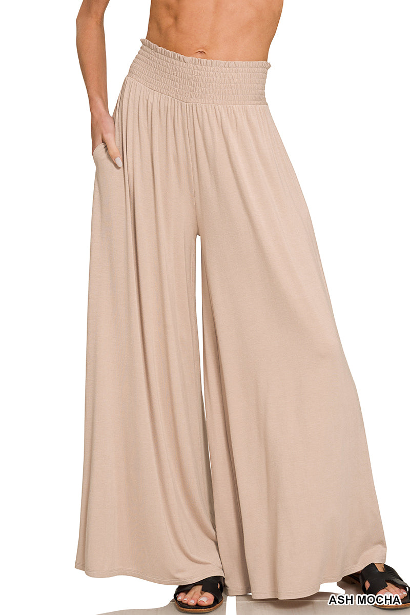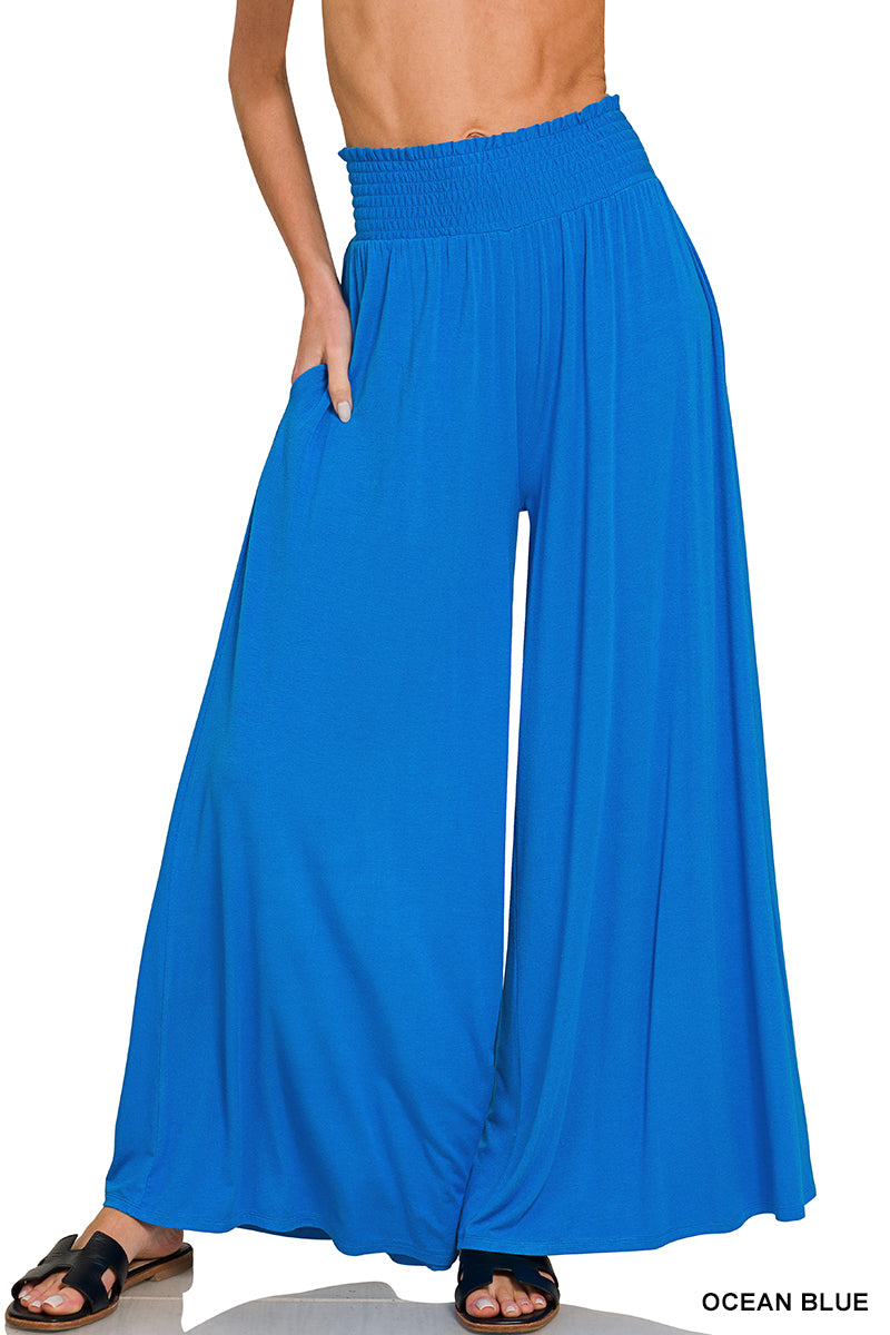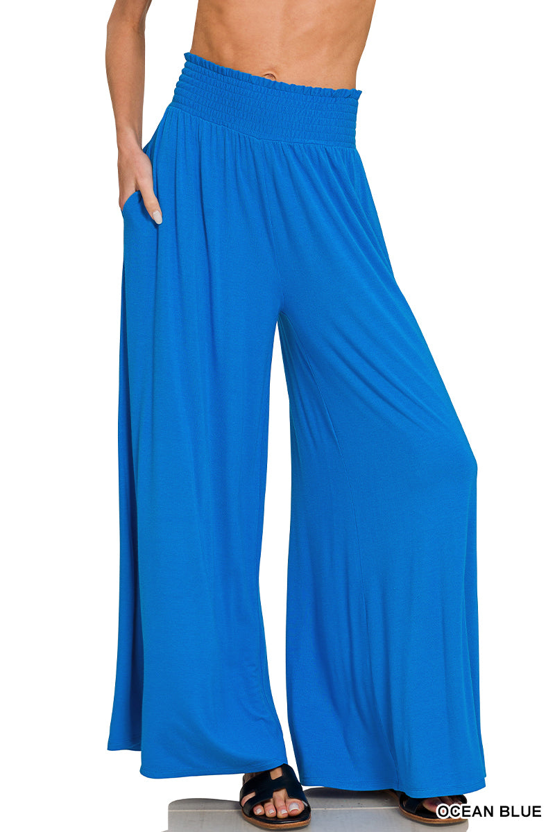 The Zenana Smocked Waist Wide Leg Palazzo Pants