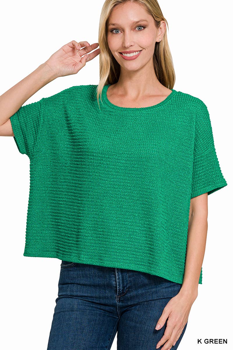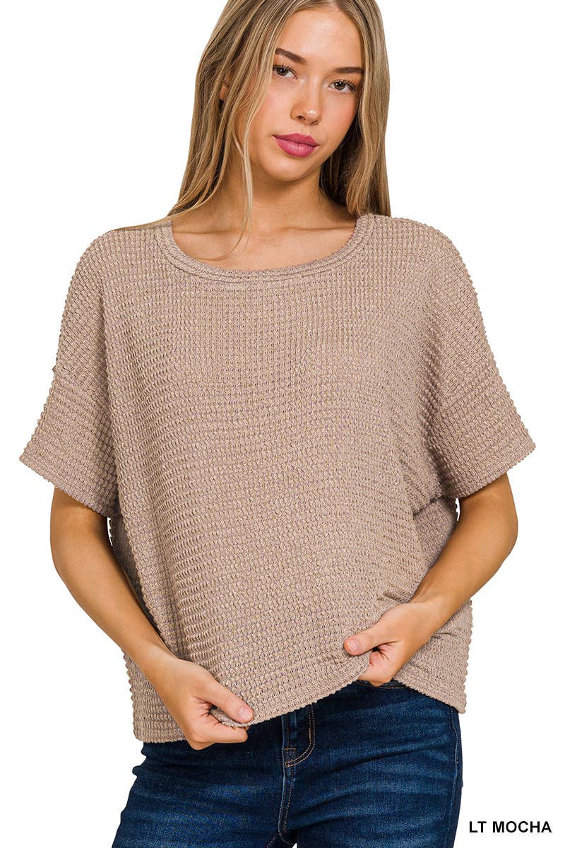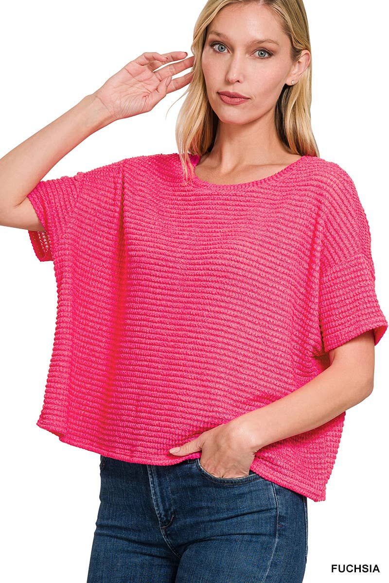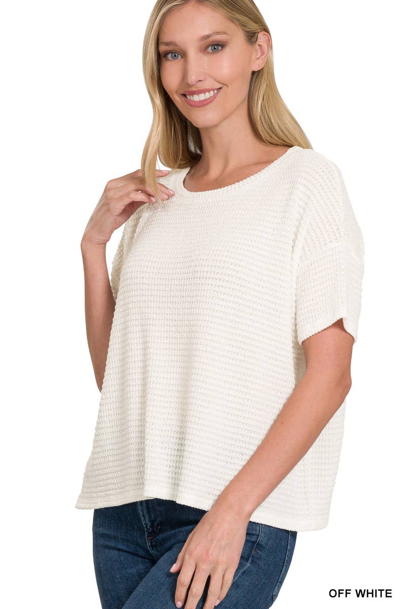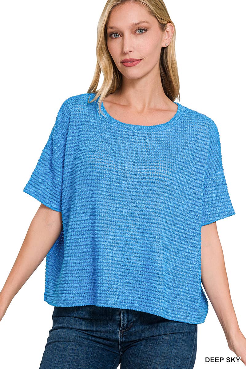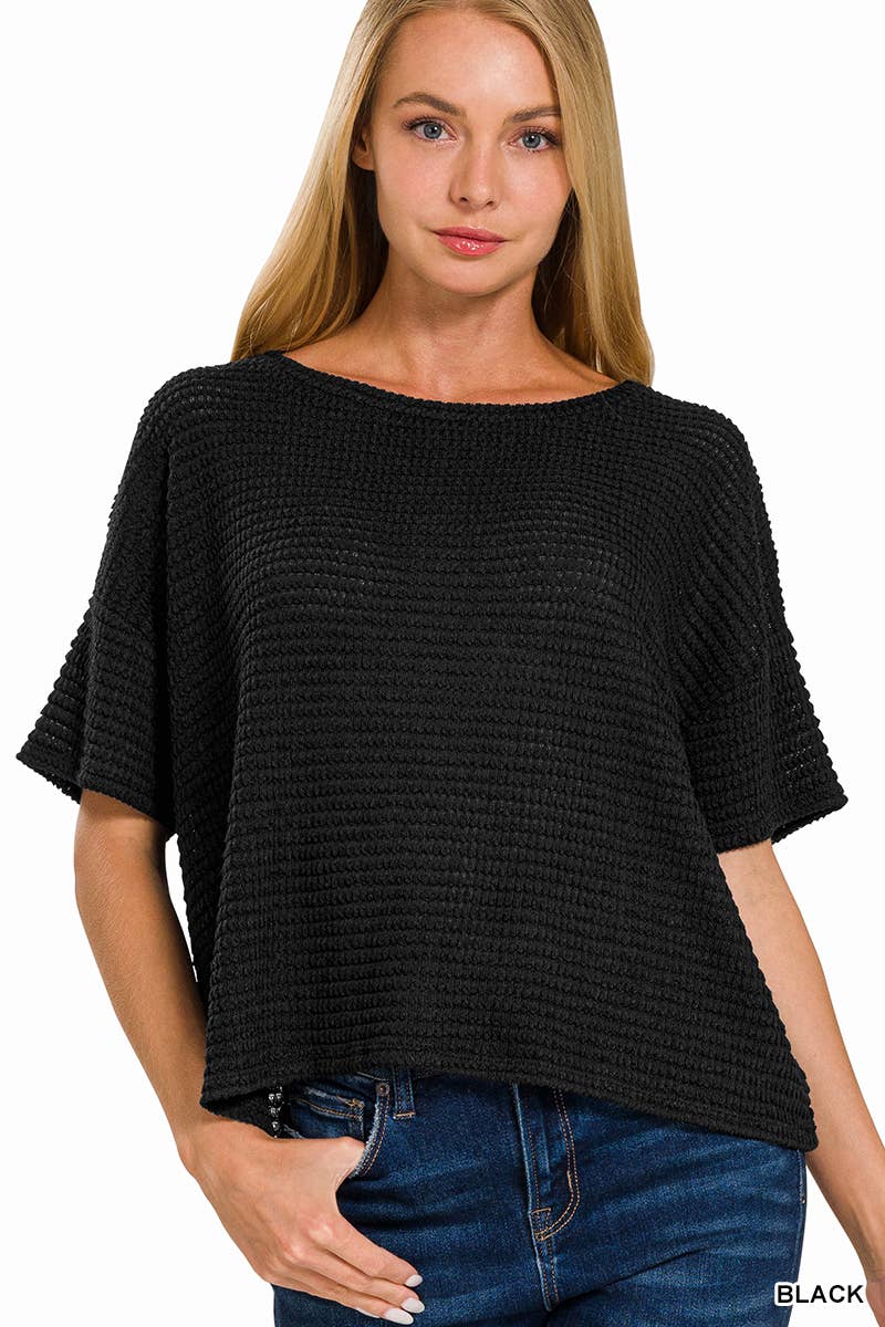 Drop Shoulder Short Sleeve Jacquard Sweater