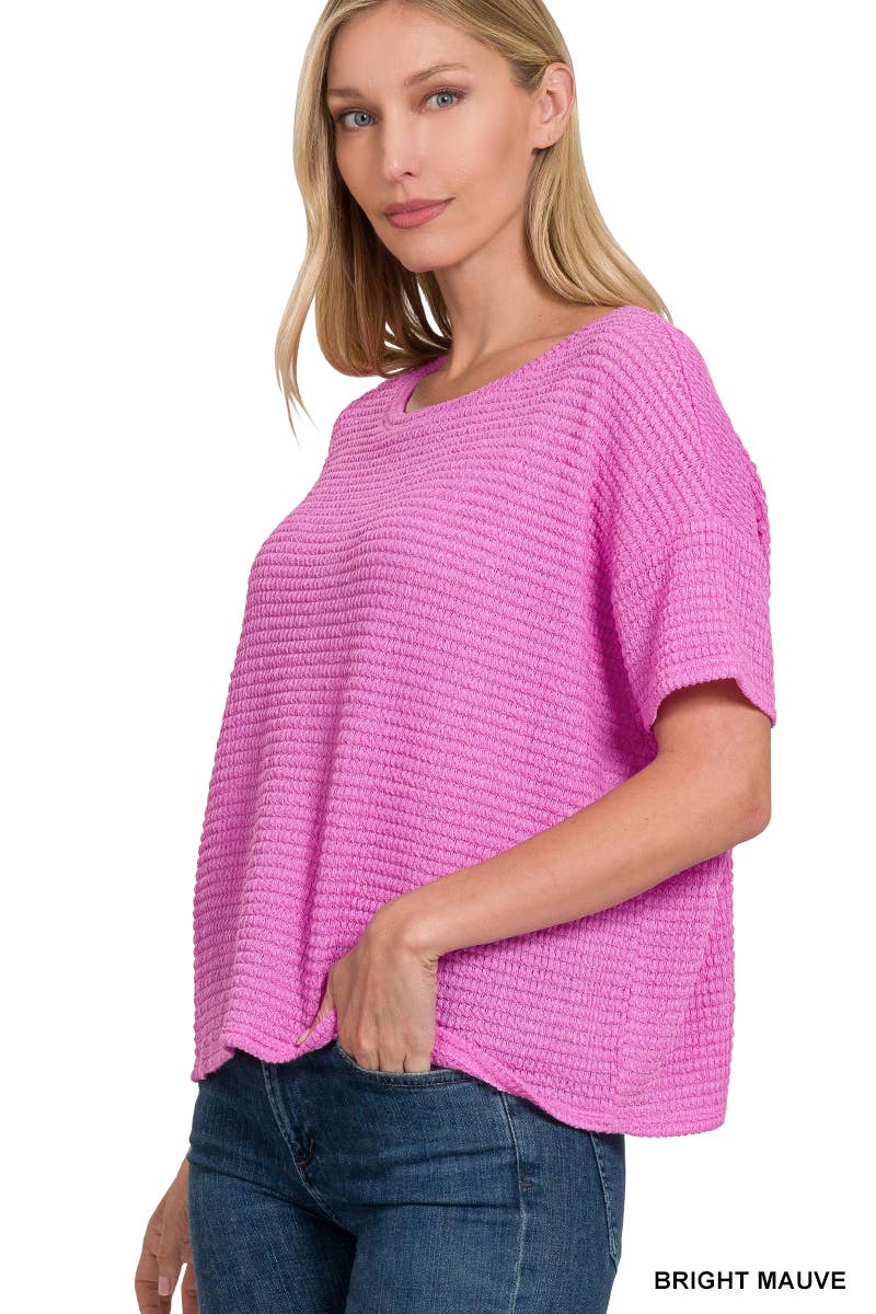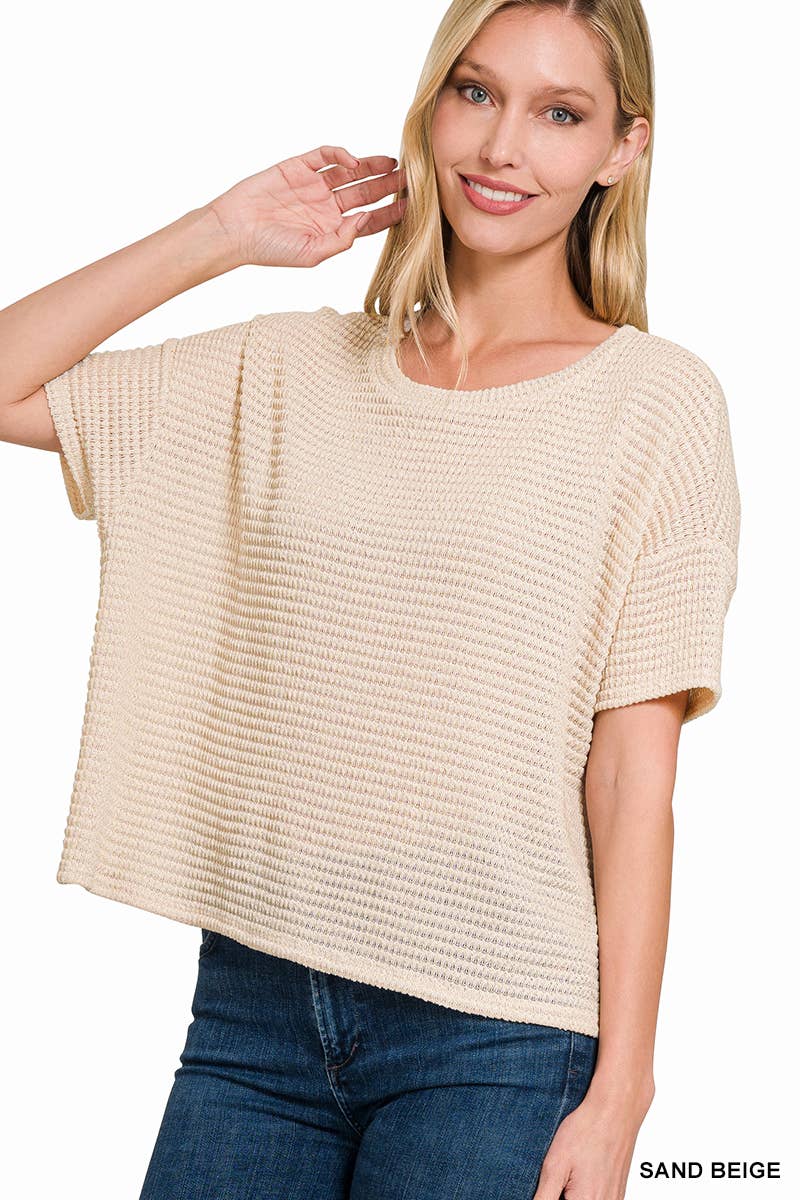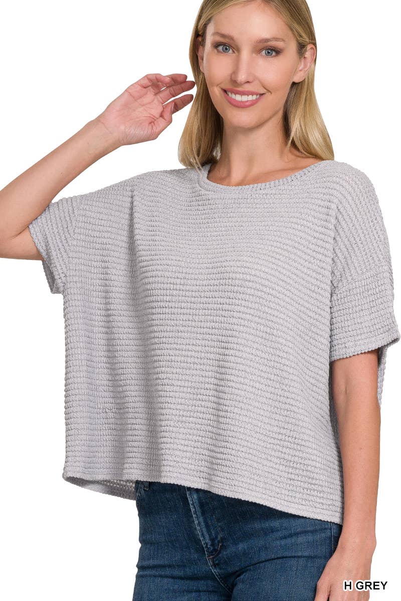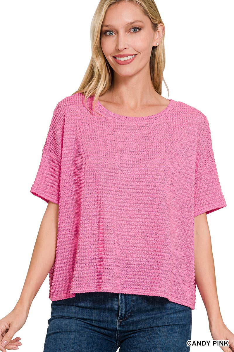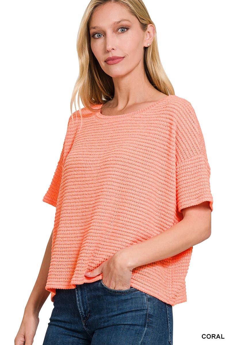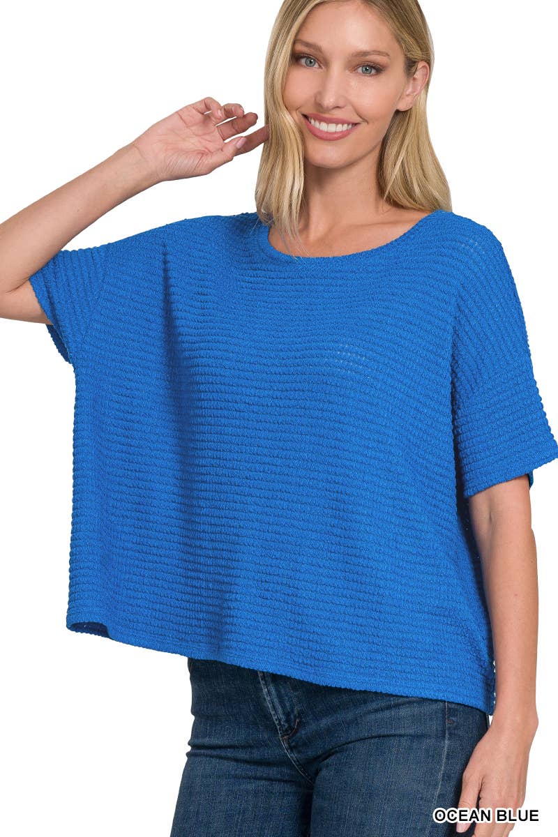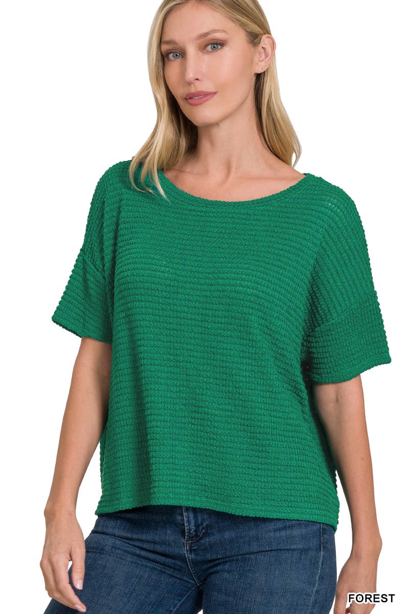 Drop Shoulder Short Sleeve Jacquard Sweater