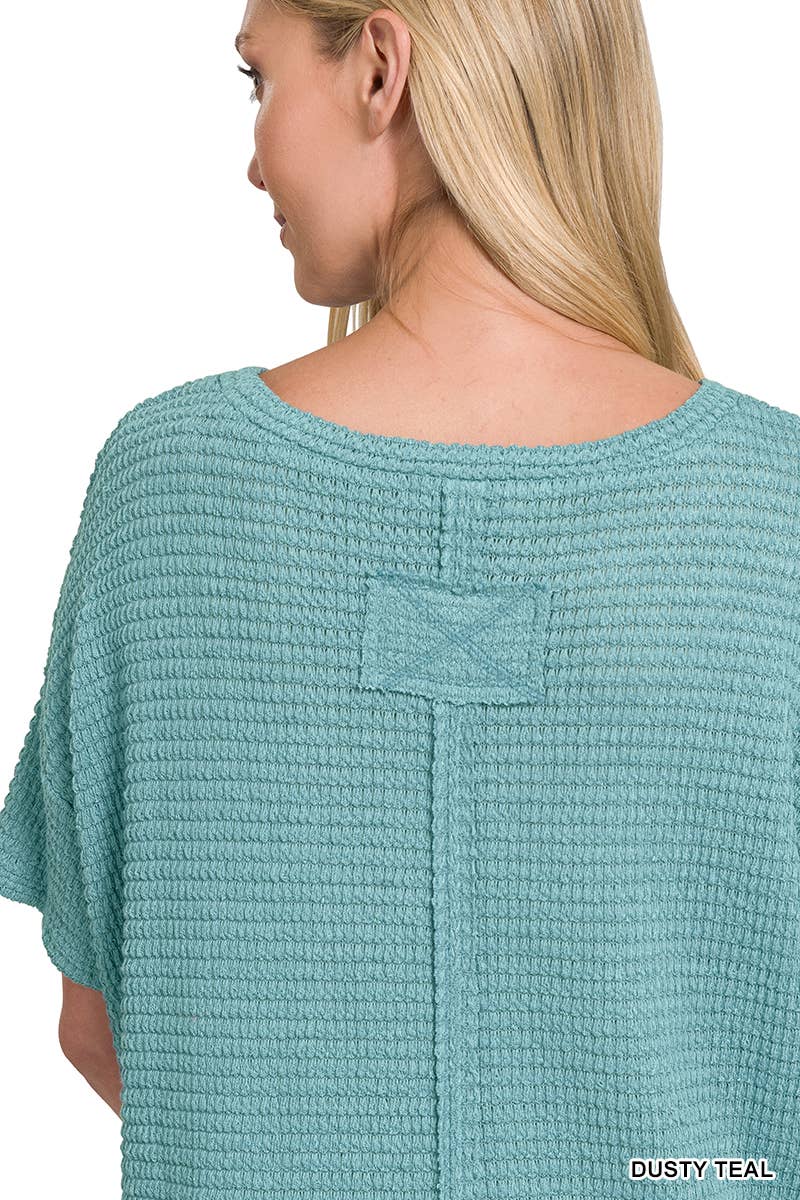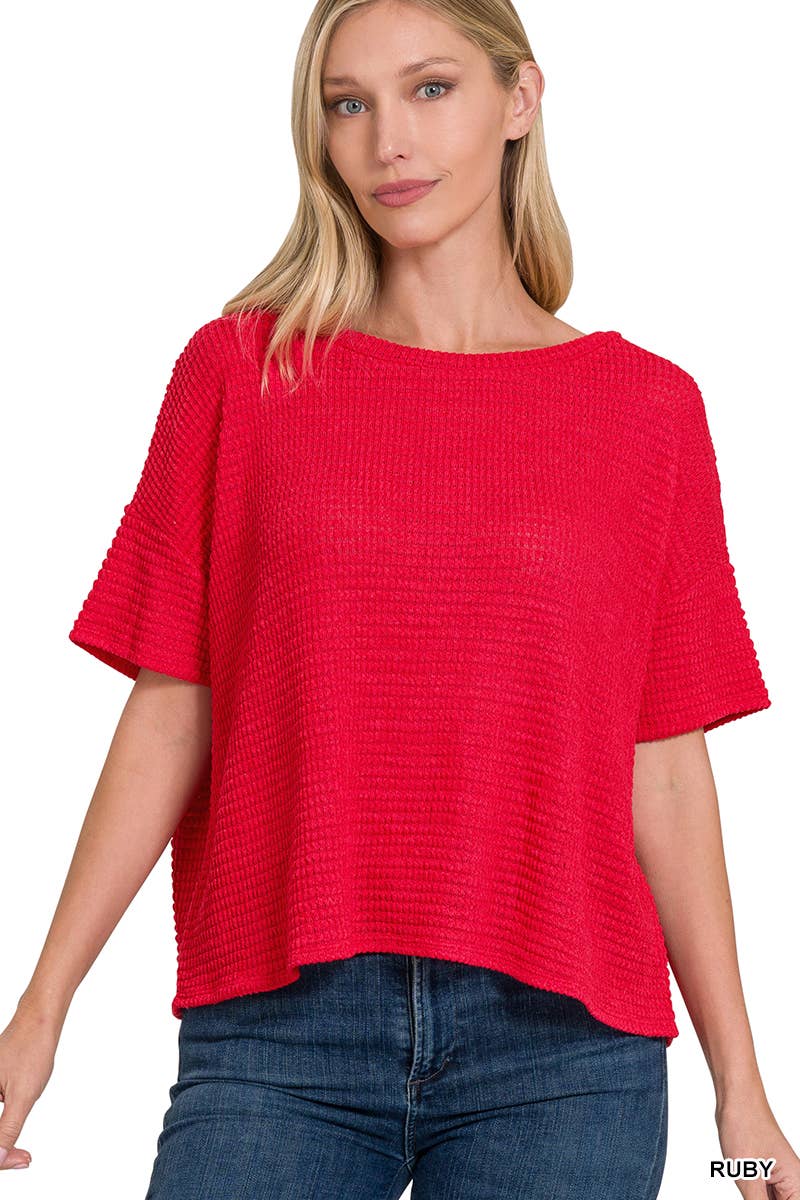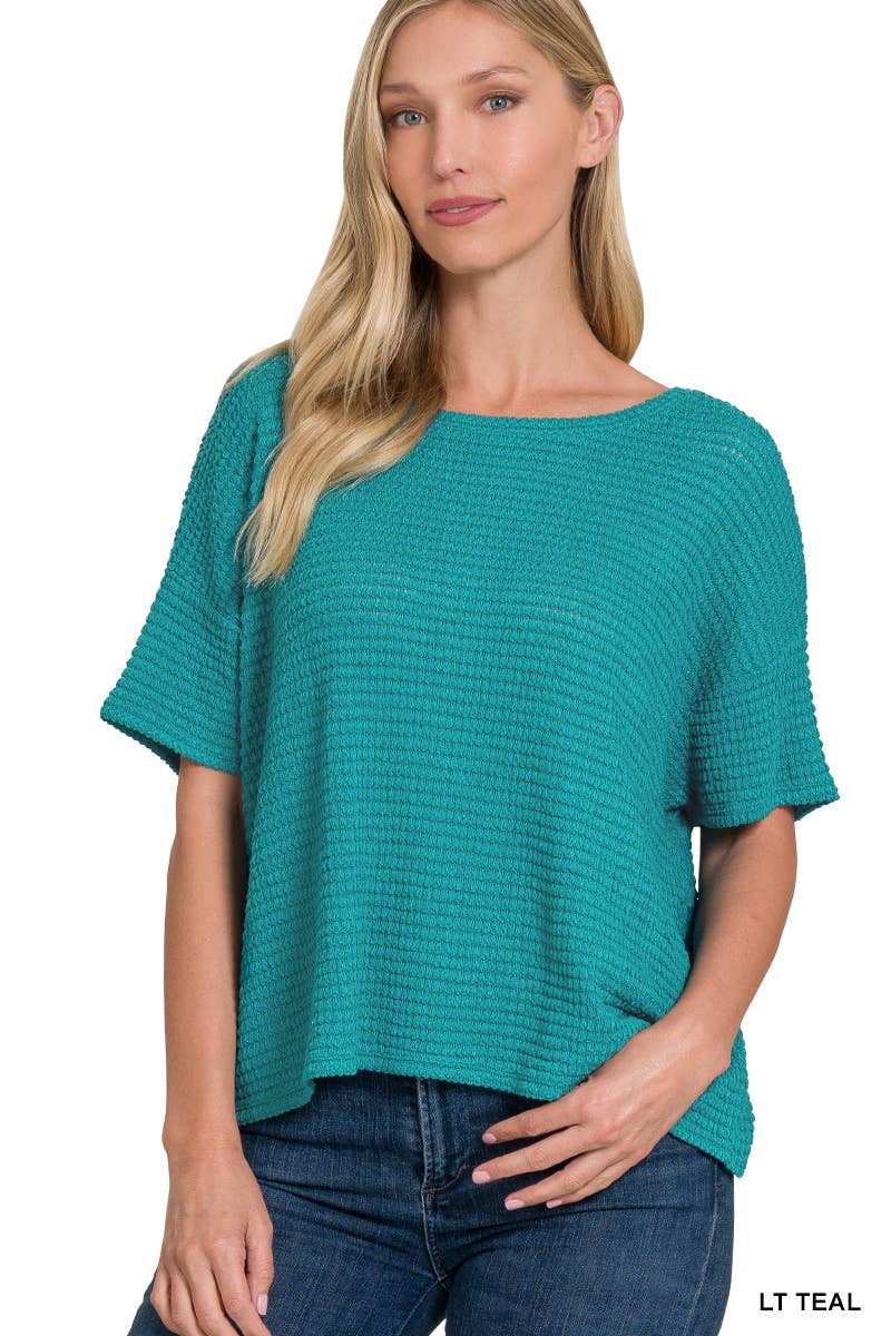 Zenana Drop Shoulder Jacquard Sweater Top w/ back patch