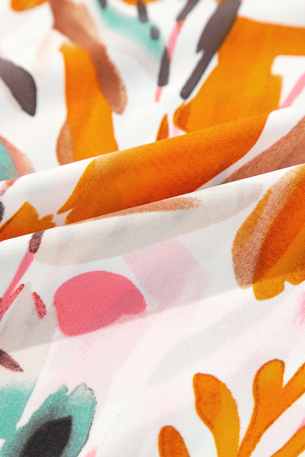 Abstract Drawstring Frilled V Neck Blouse