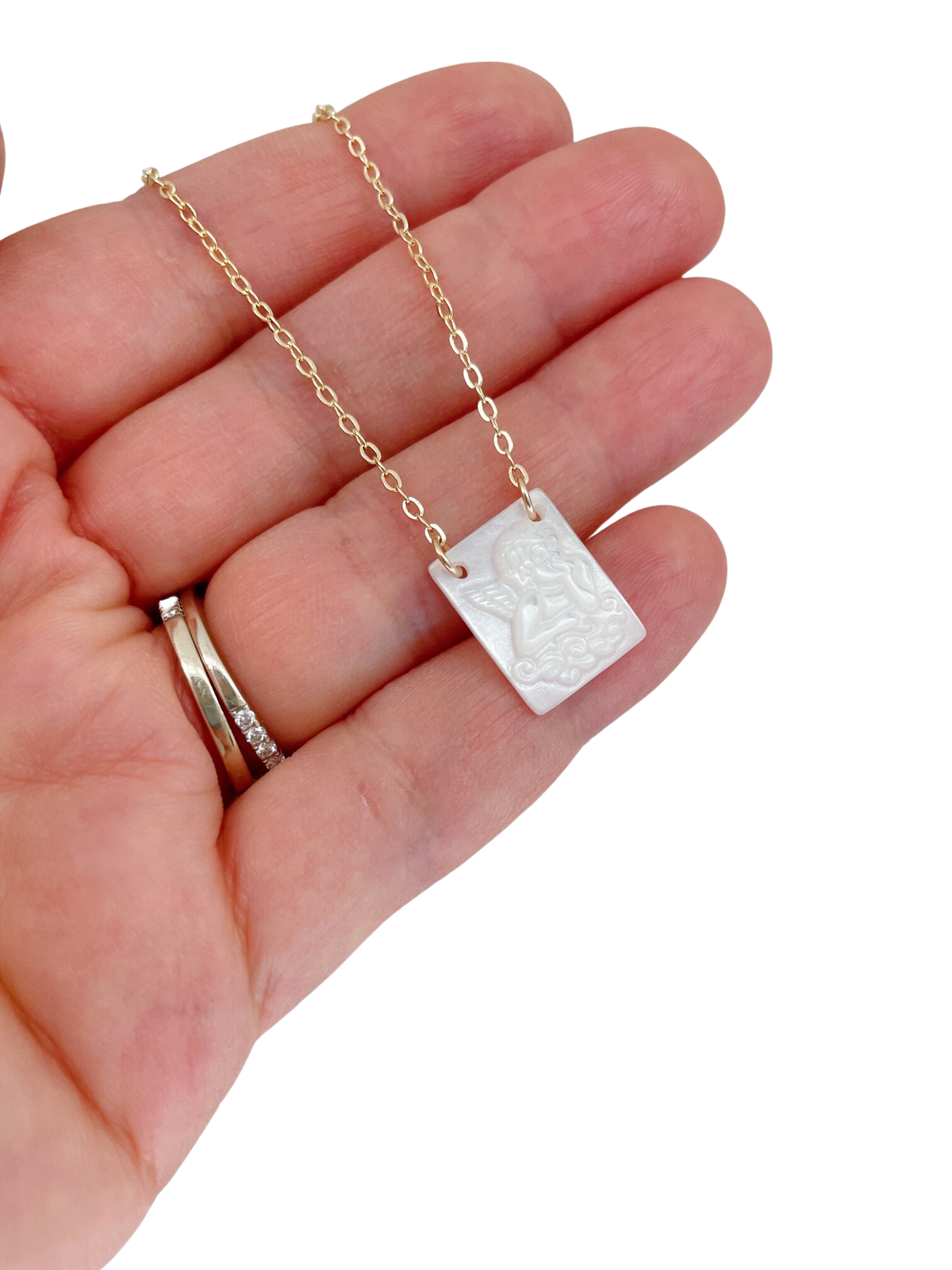 Angel Necklace, Pearl Jewelry, Religious Mothers Day Gift