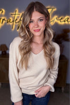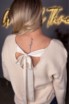 Apricot Lantern Sleeve V Neck Knot Back Sweater