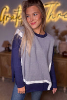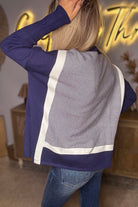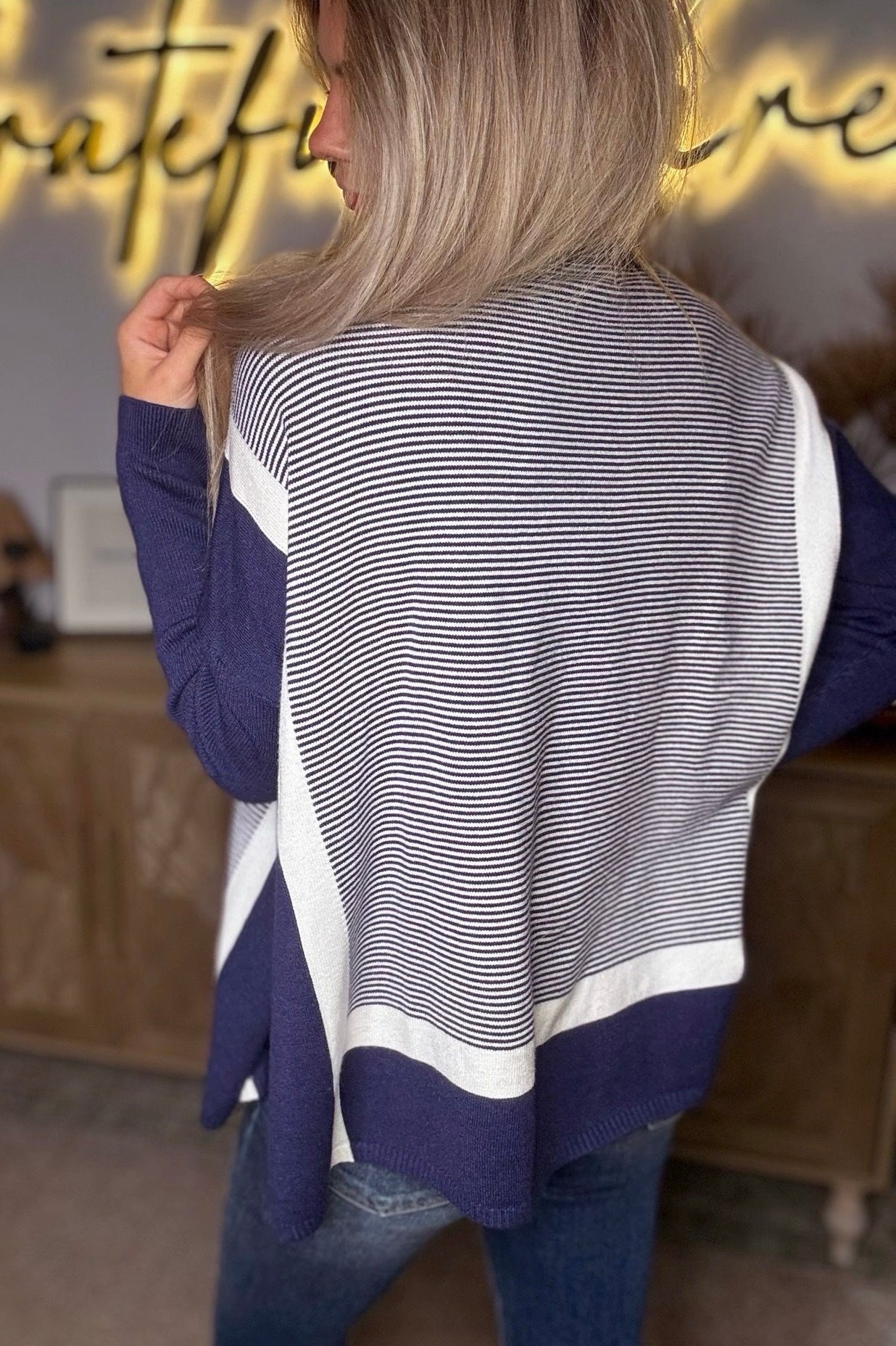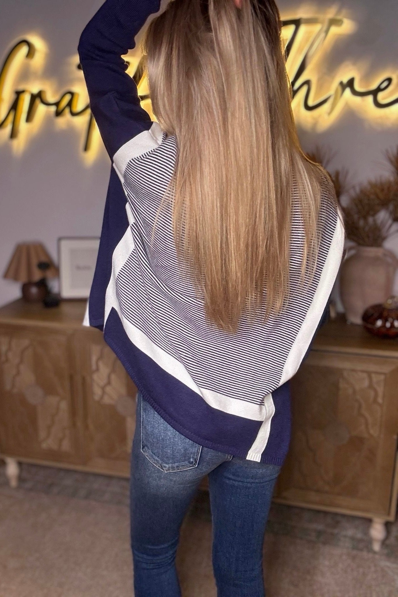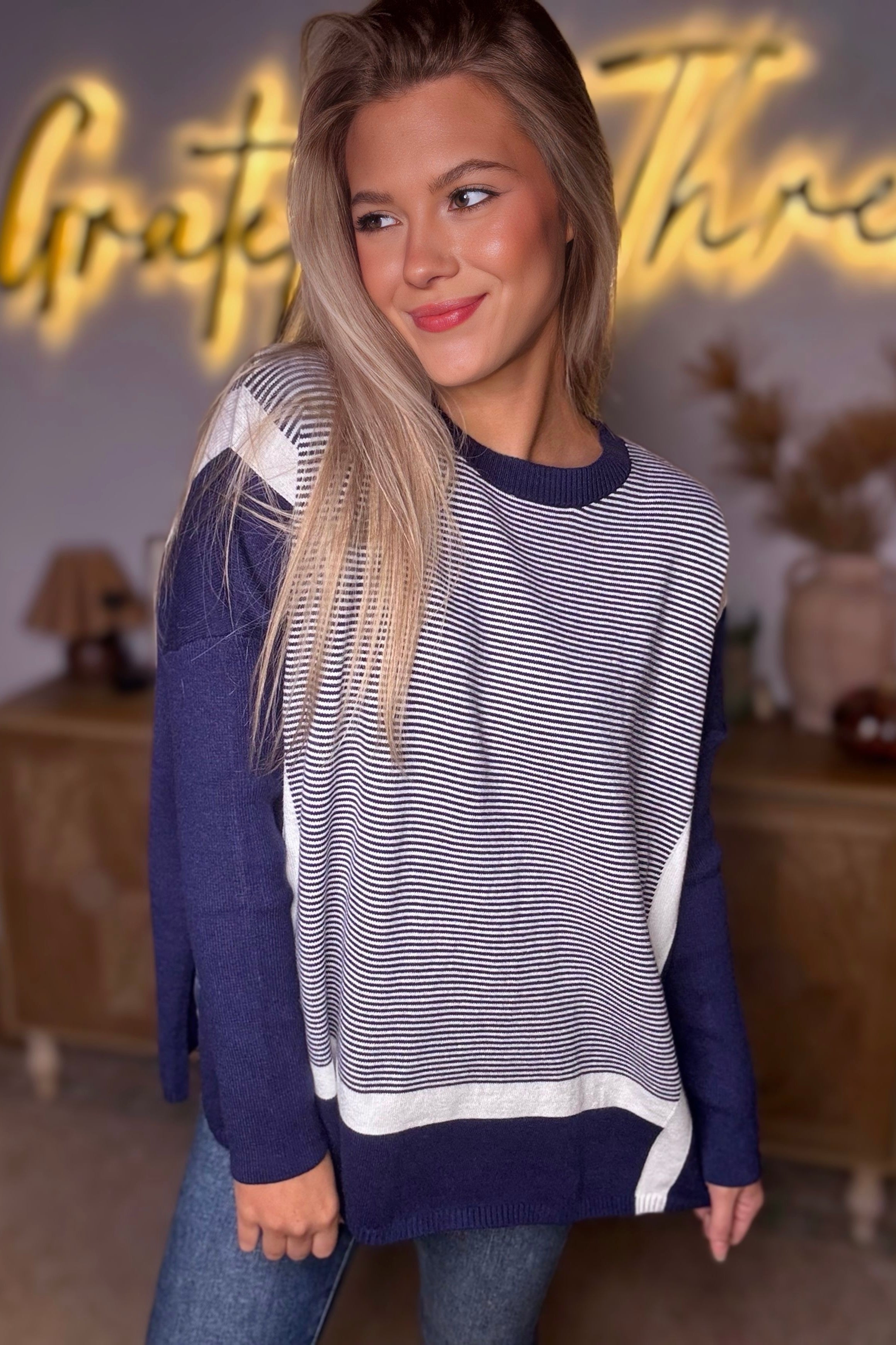 Blue Stripe Color Block Patchwork Dolman Oversize Tunic Sweater