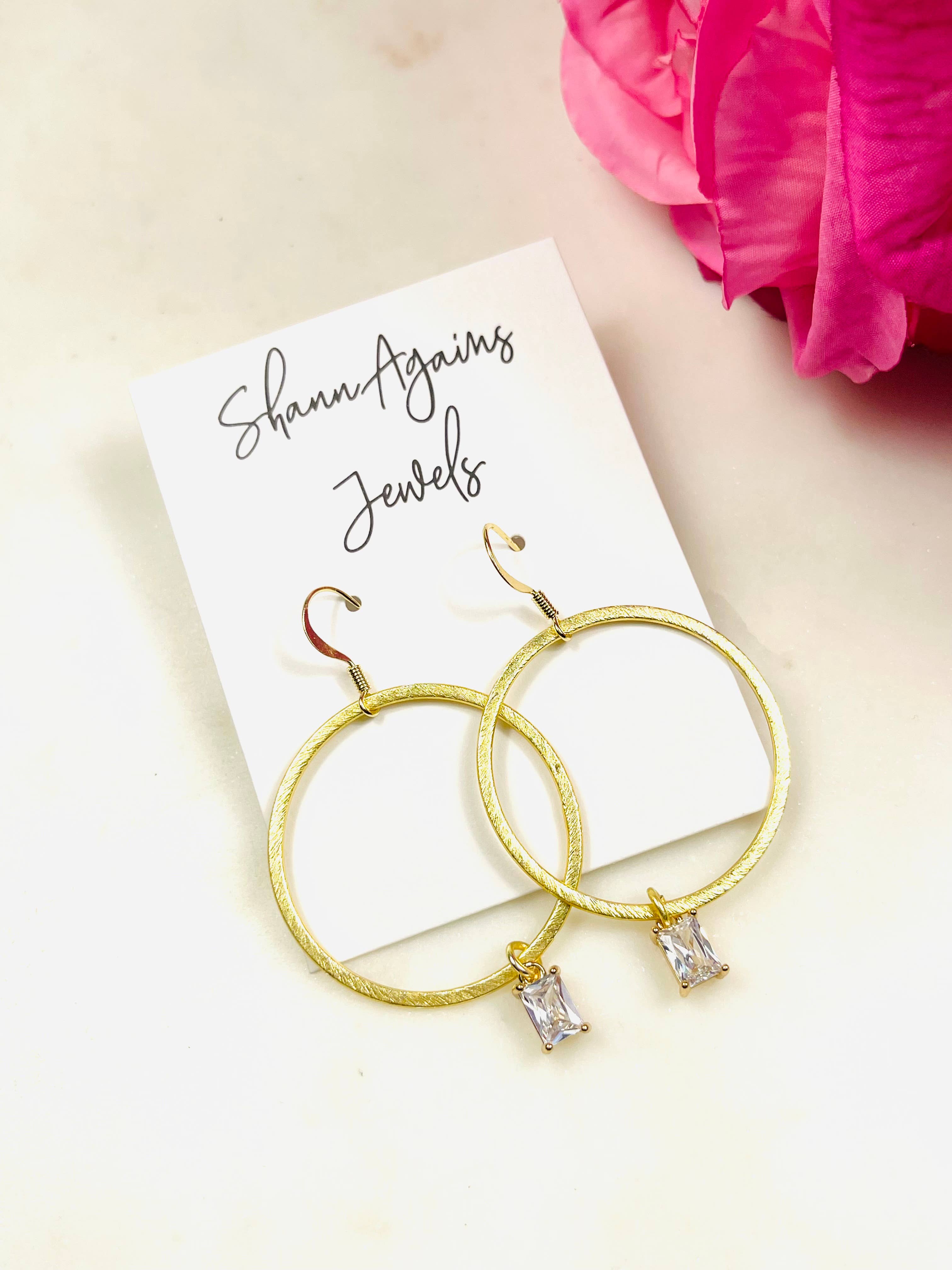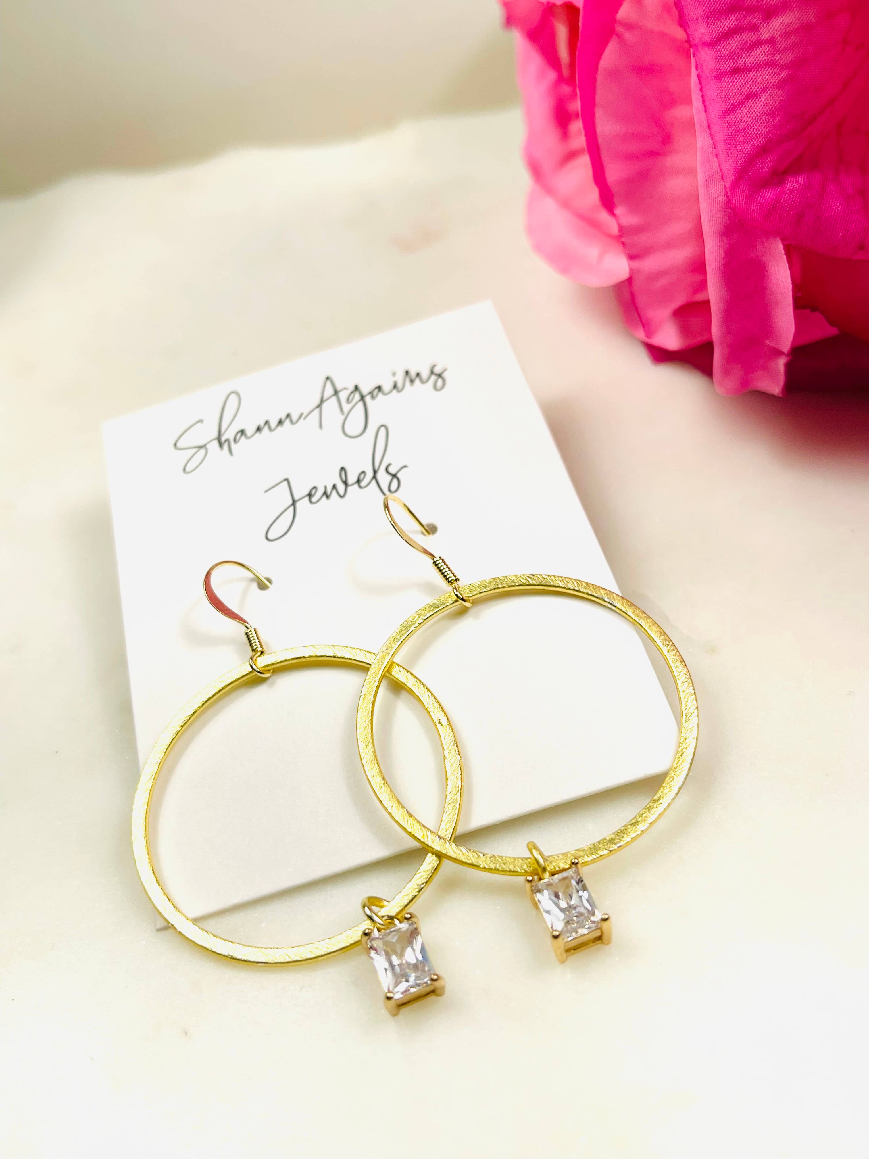 These Diamond Hoop Earrings feature a classic hoop with hanging square diamonds that offer a timeless yet everyday style. Made with plated 14k gold, they are also lightweight for comfortable wear.