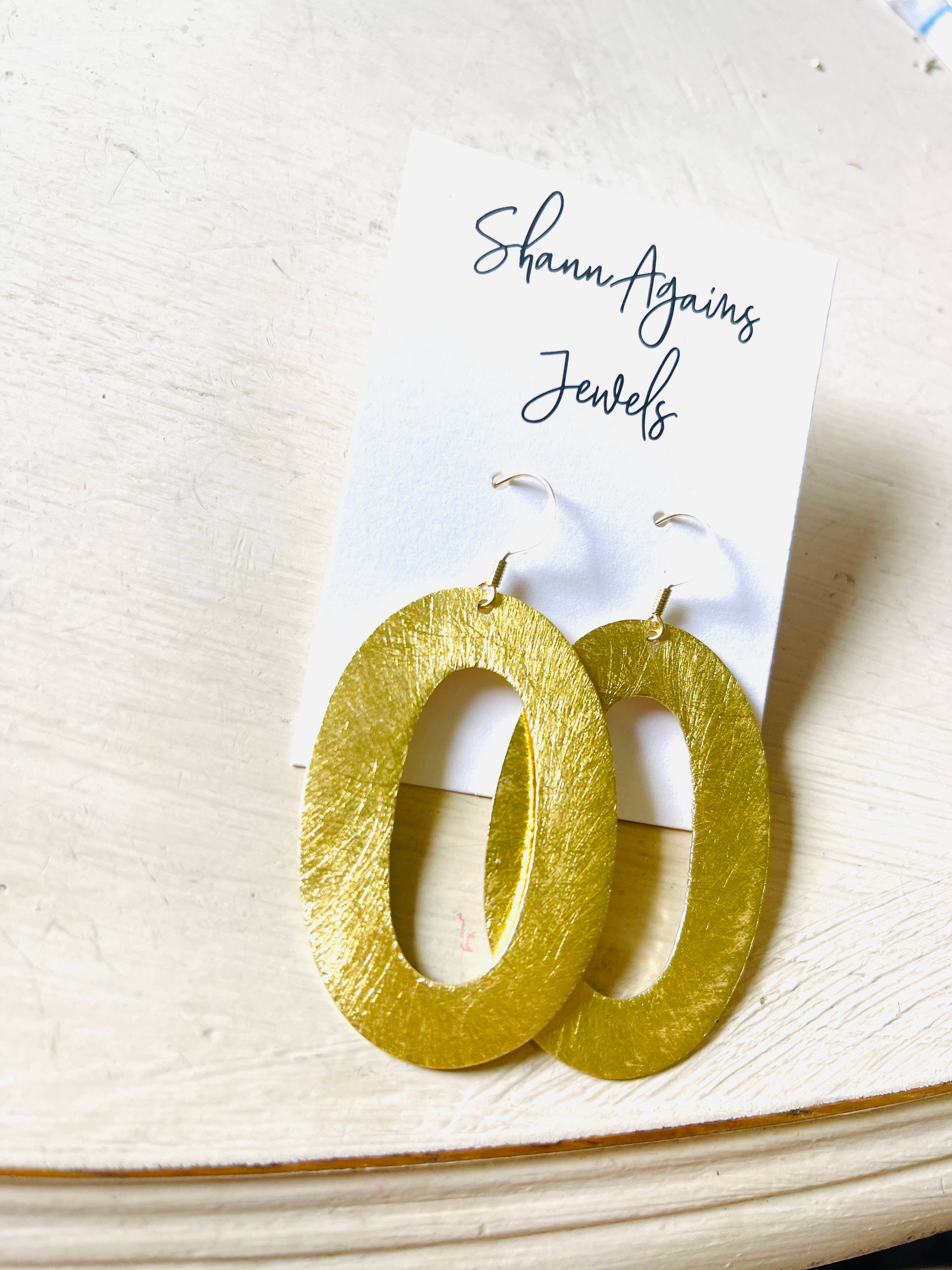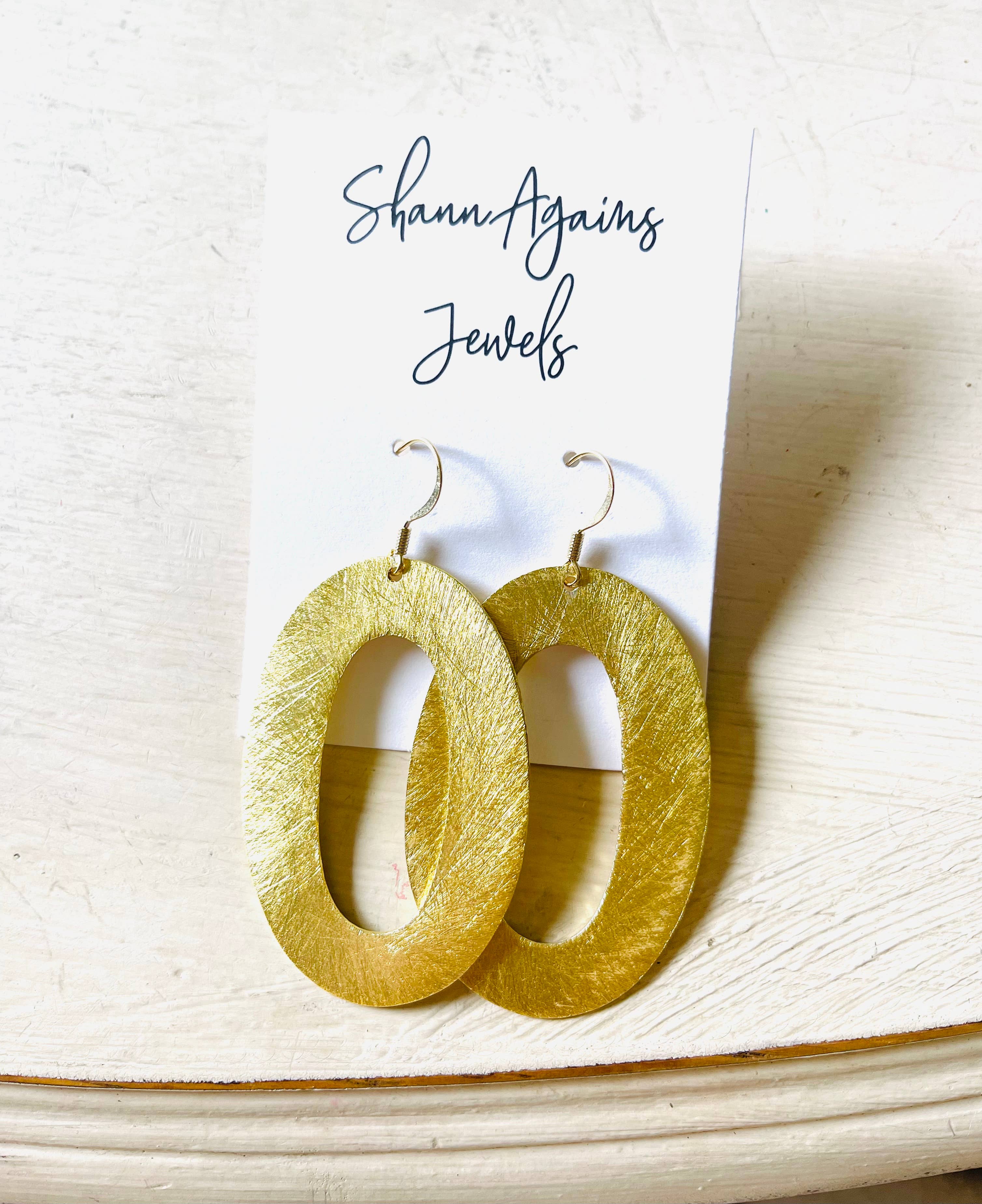Larger thicker brushed gold dangle earrings 14k overlay 14k hardware Light weight