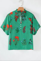 Evergreen Bloom Buttoned V-Neck Floral Blouse