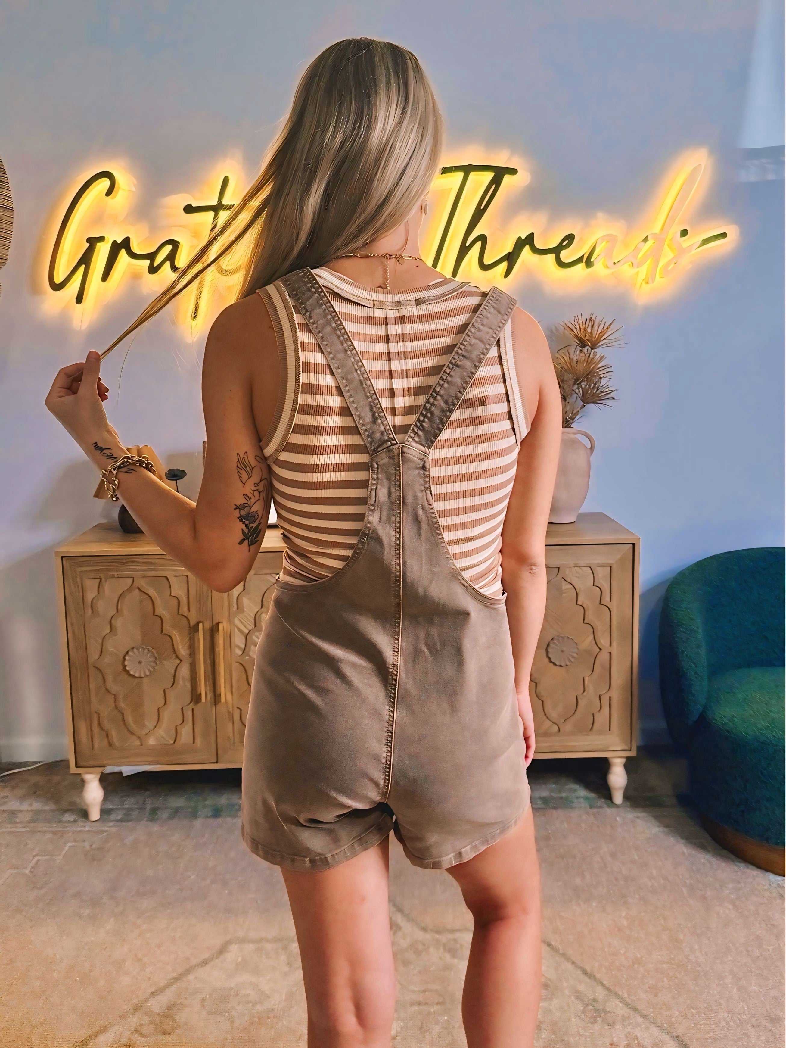 Effortlessly Cool Knot Strap Denim Romper – Light French Beige