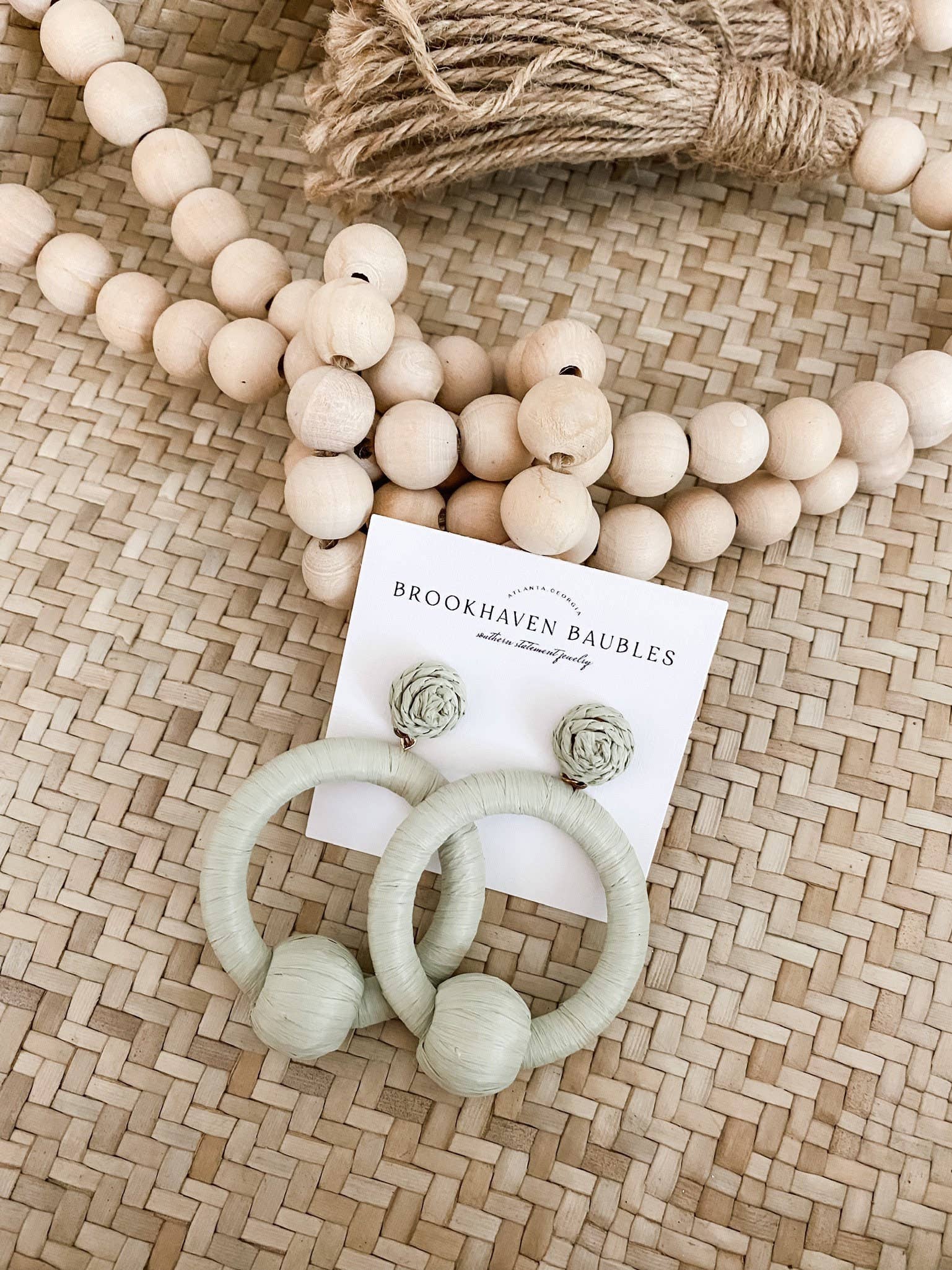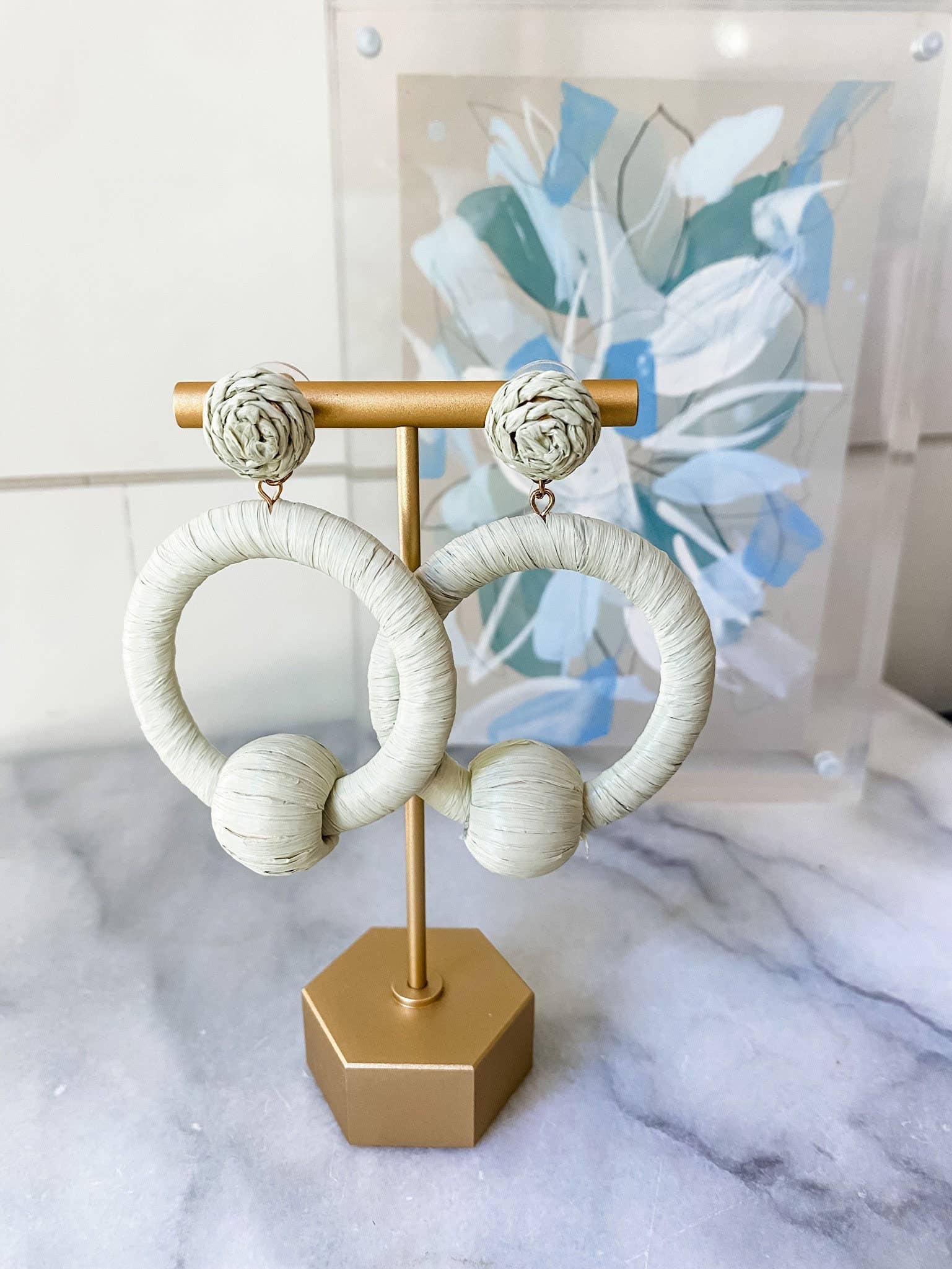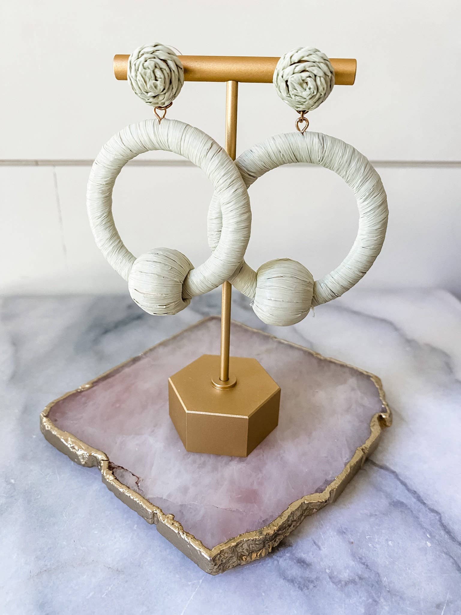 Pastel Mint Raffia Drop Hoop Earrings - Southern Jewelry