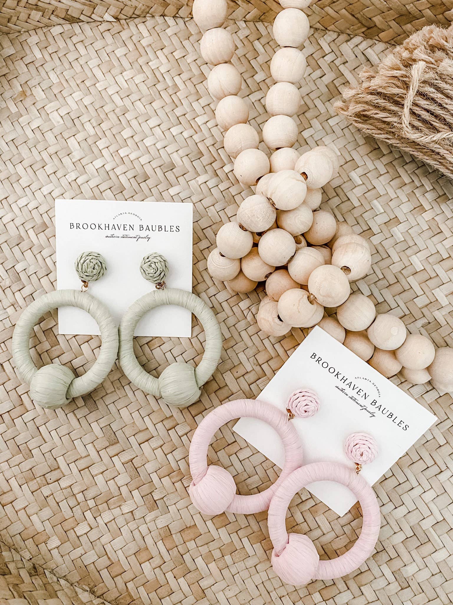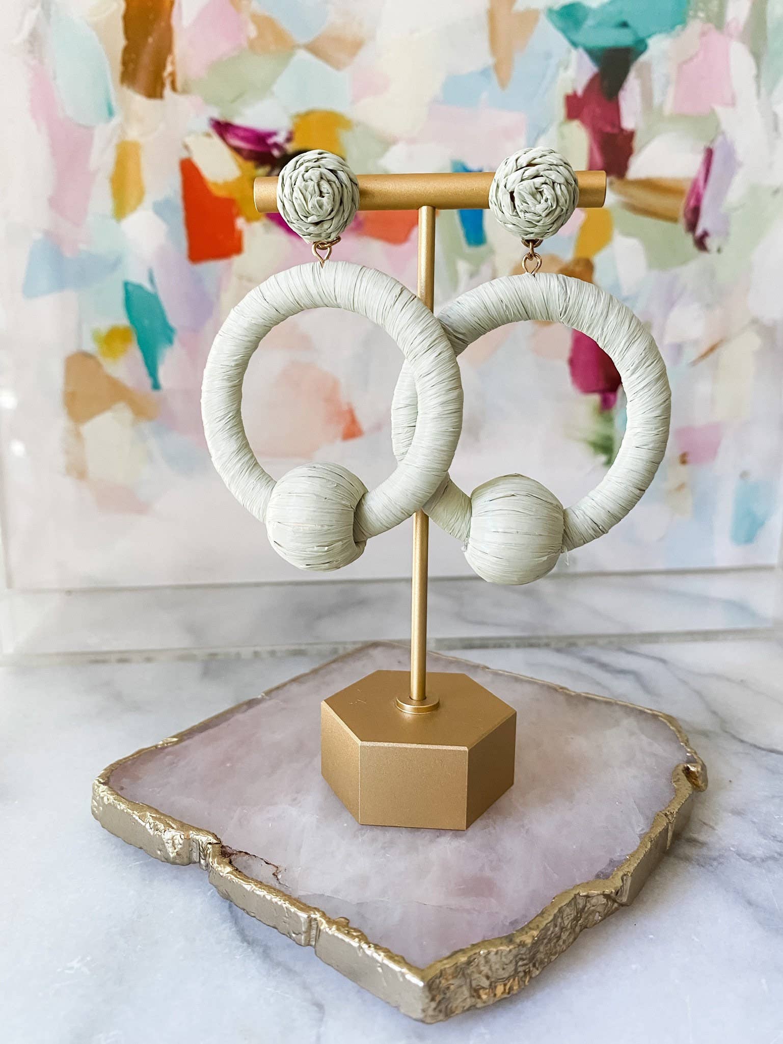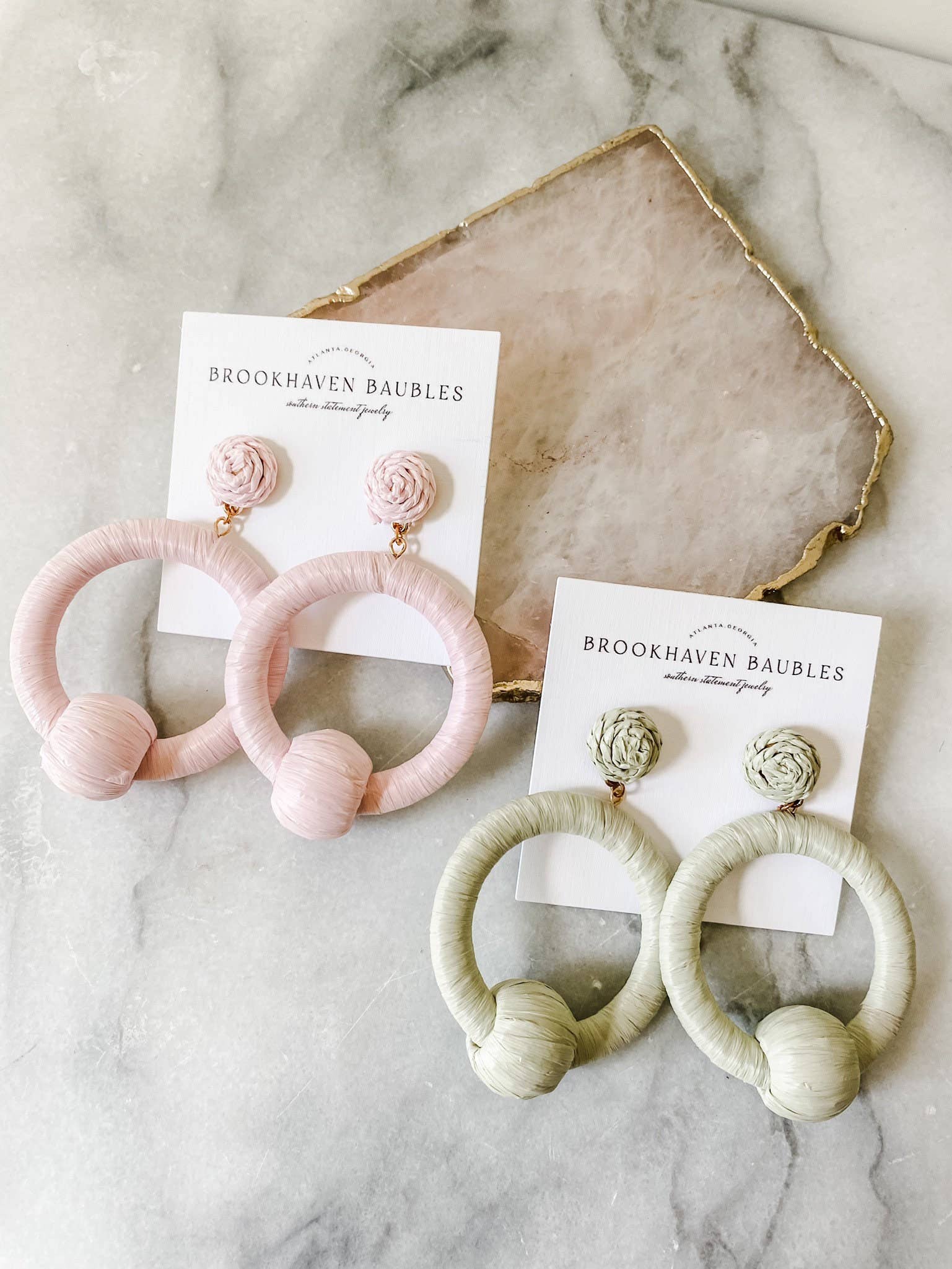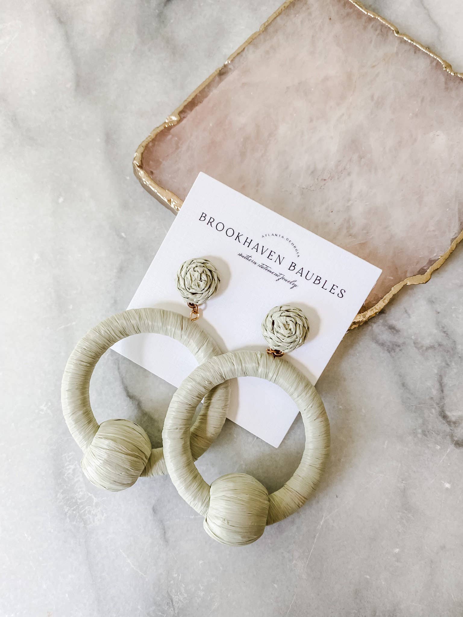 Pastel Mint Raffia Drop Hoop Earrings - Southern Jewelry