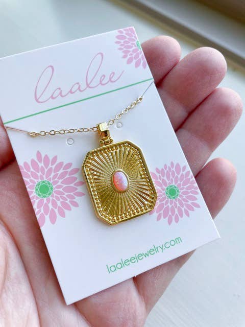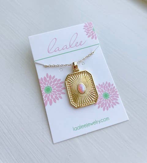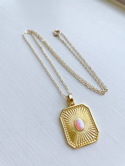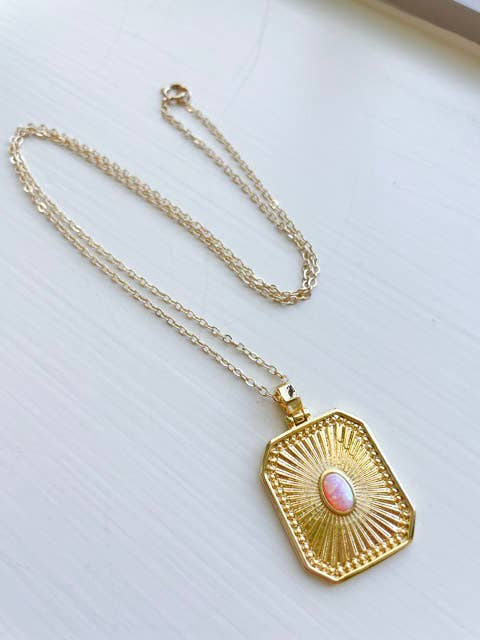 Pink Opal Necklace, Valentines Day Necklace, Gold Necklace