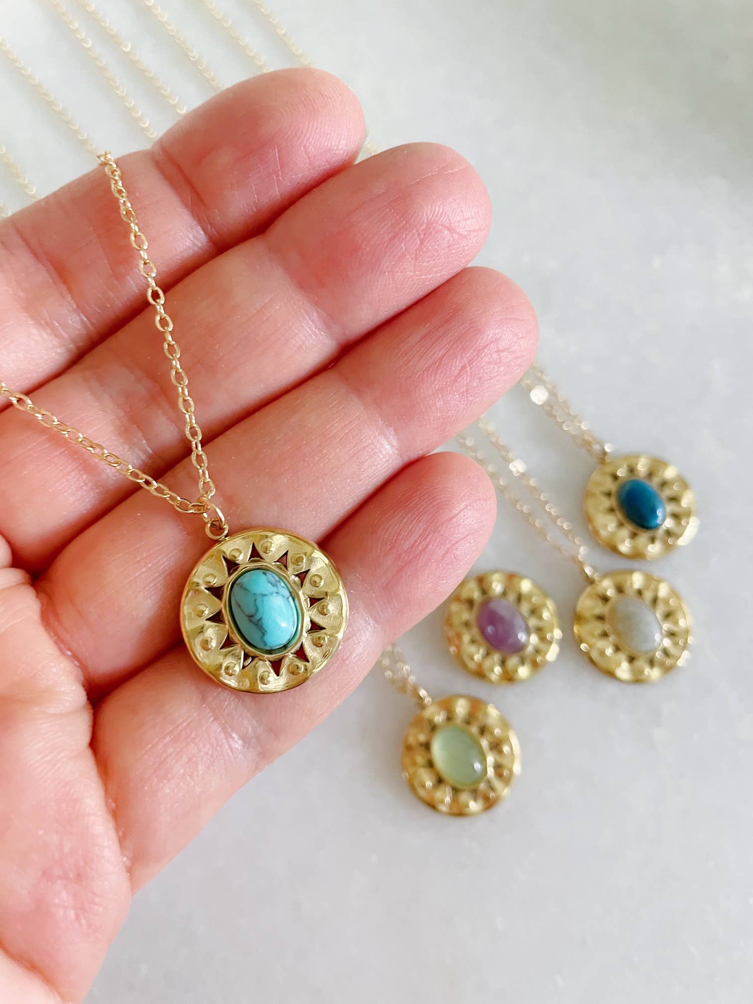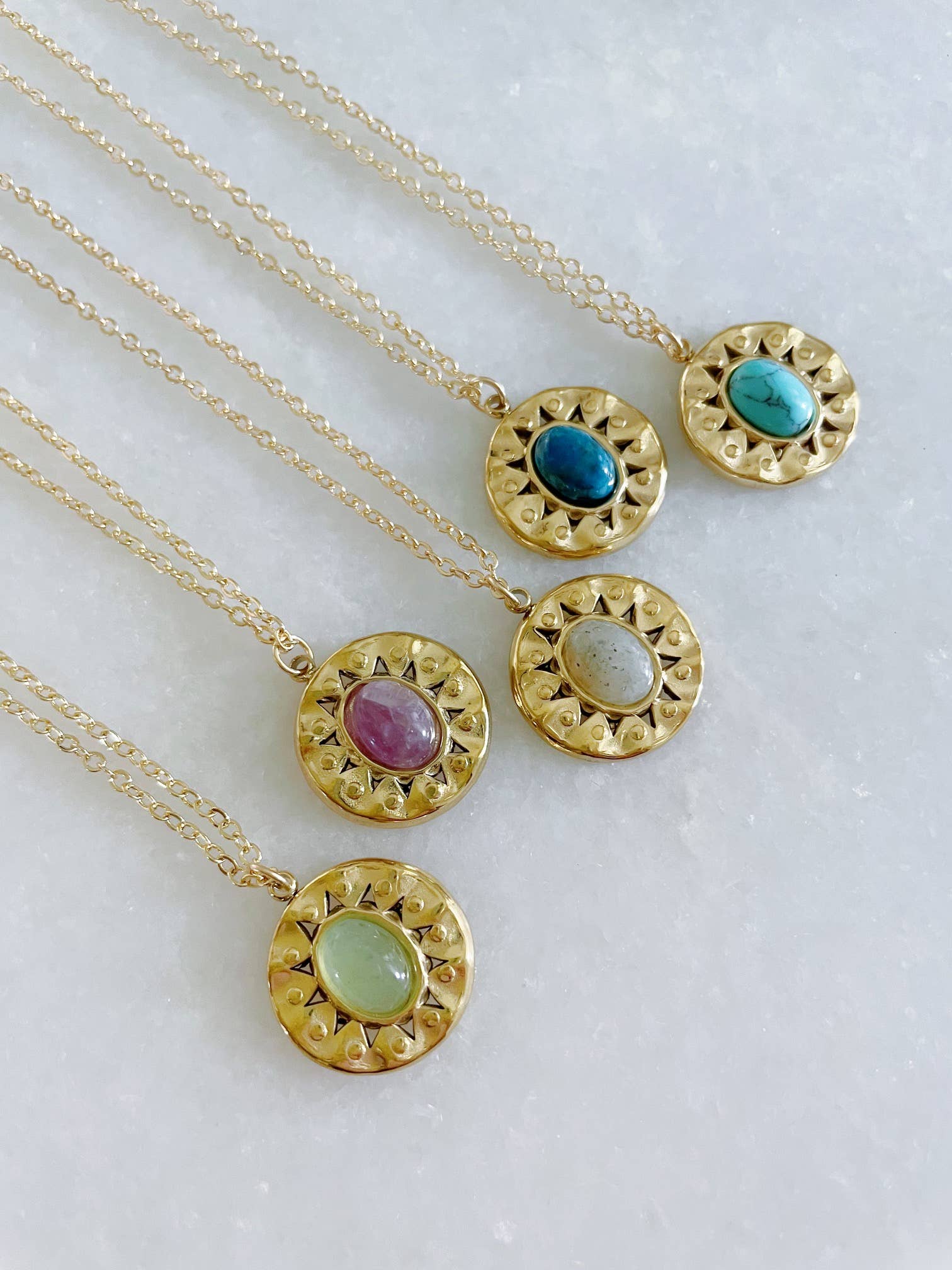 Round Pendant Necklaces, Oval Stone Necklace, Gold Layering